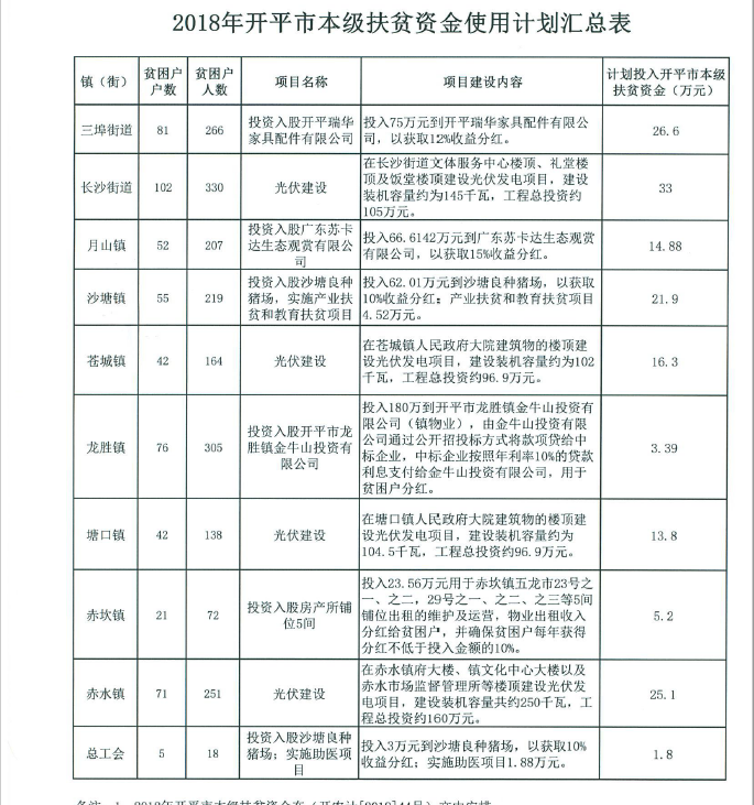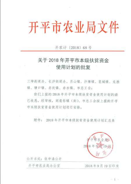 开农计[2018]68号关于2018年江门本级扶贫资金使用计划的批复