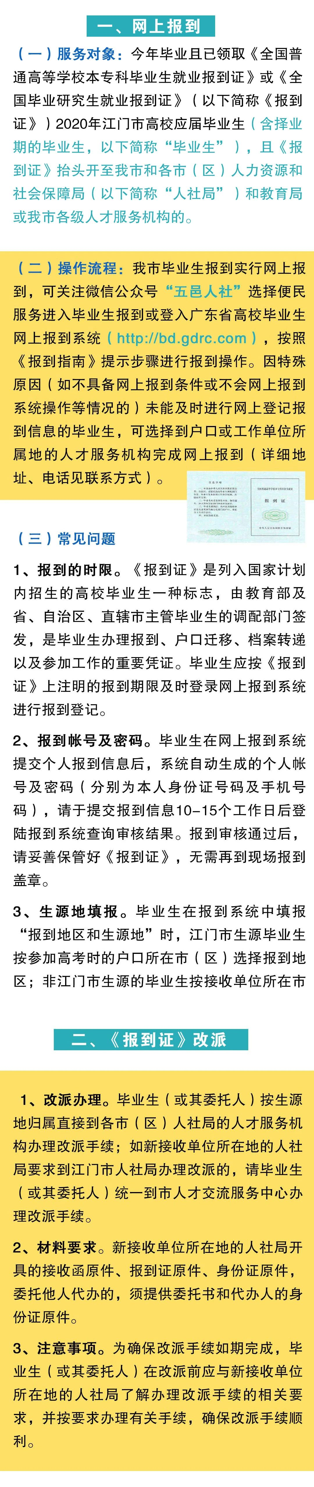 今天,小编用一张图详细介绍2020年江门市高校毕业生如何网上报到、《报到证》改派及档案转递……