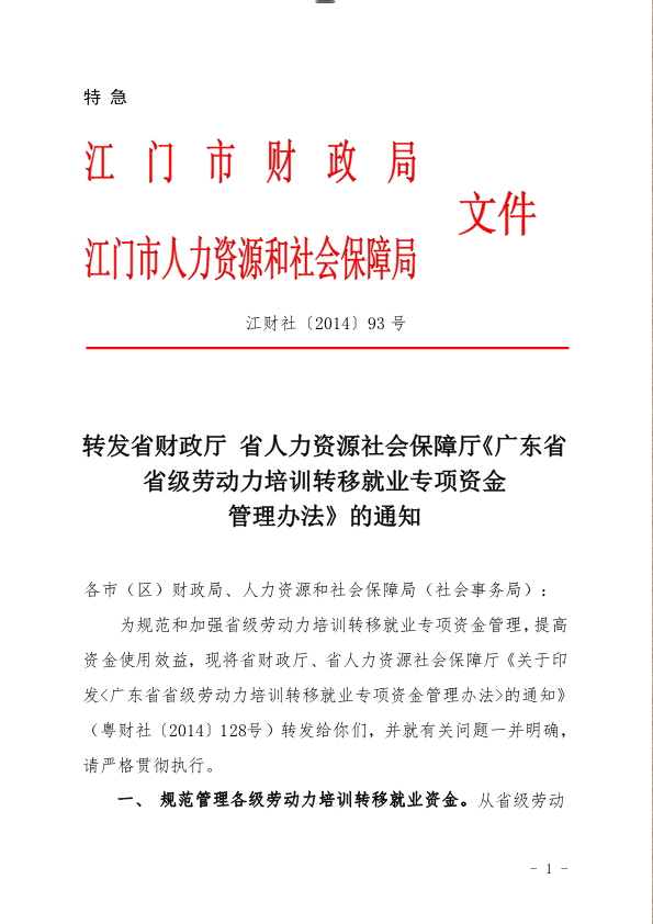 江财社[2014]93号_转发省财政厅 省人力资源社会保障厅《广东省省级劳动力培训转移就业专项资金管理办法》的通知_1514608383398.zip