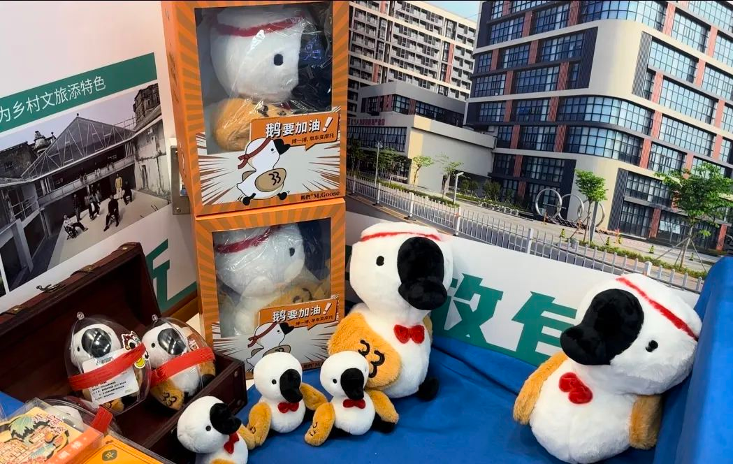 展区同时还邀请了入驻基地的创业项目主理人参展,来自香港的“鹅们藏宝图”的主理人谭国萍带着她可爱的“阿呆”毛绒公仔亮相,“阿呆”以开平马冈鹅为创作原型,结合烧鹅、五味鹅等美食的元素,可爱有趣的可吸附设计,吸引了众多求职者的目光。“希望各位师弟师妹们,能带着我们文创产品,来到开平,去逛我们的碉楼粮仓、赤坎古镇,去吃我们的马冈鹅、豆腐角,去创业、去就业、去实现你自己的梦想。”谭国萍说道。