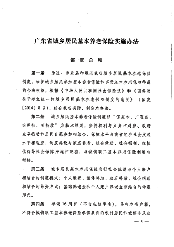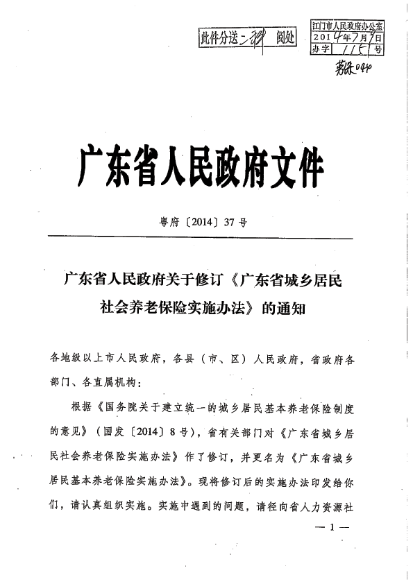 广东省城乡居民基本养老保险实施办法-粤府[2014]37号