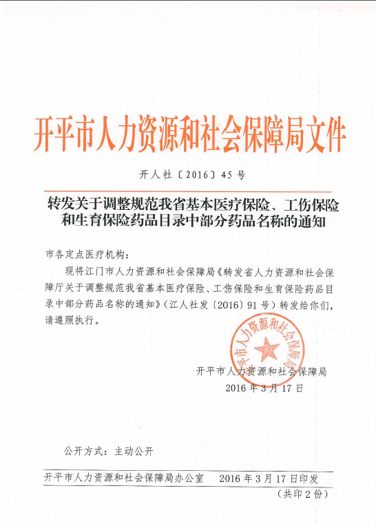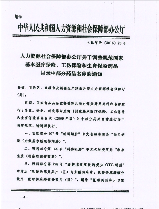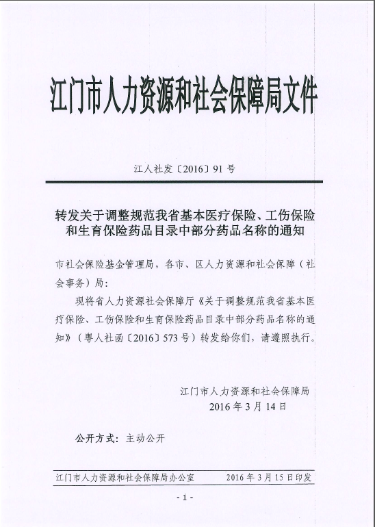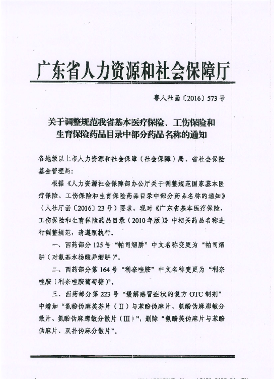 转发关于调整规范我省基本医疗保险、工伤保险和生育保险药品目录中部分药品名称的通知