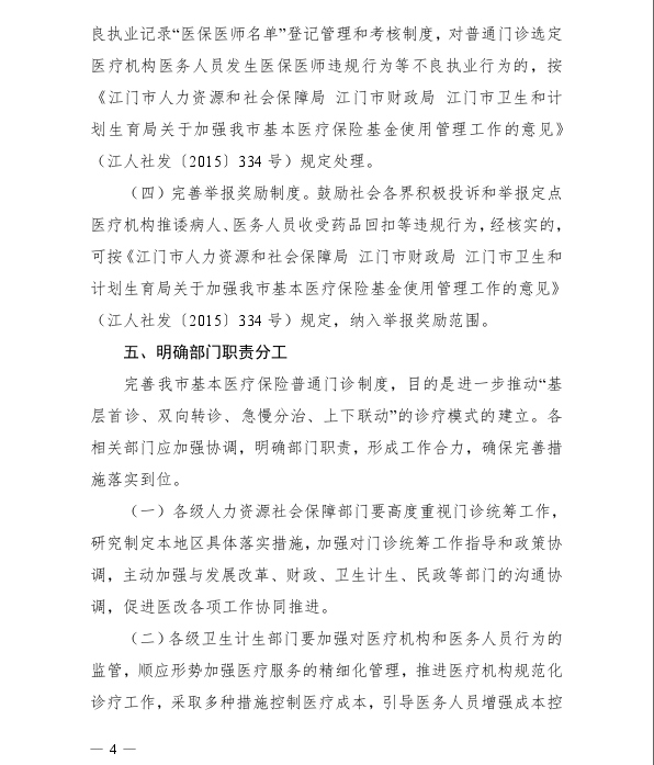 江门市人民政府办公室关于进一步完善江门市职工基本医疗保险普通门诊统筹的意见