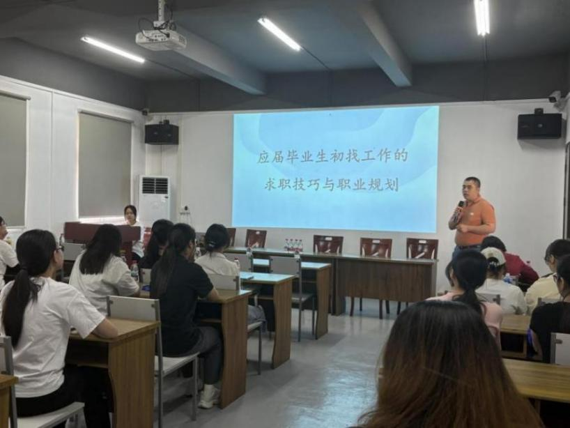 紧接着,活动邀请到两位职业规划领域的导师开展授课。职业生涯规划师、现江门博高咨询管理有限公司高级合伙人——陈小玲开展“职场加速器——让你快速拿到Offer”主题授课,内容包含简历的设计与制作、面试的准备以及技巧运用。广东冠星新型材料有限公司行政人事部经理胡国城则针对应届毕业生初进职场的求职技巧与职业规划进行授课,帮助高校生掌握实用有效的求职技巧。