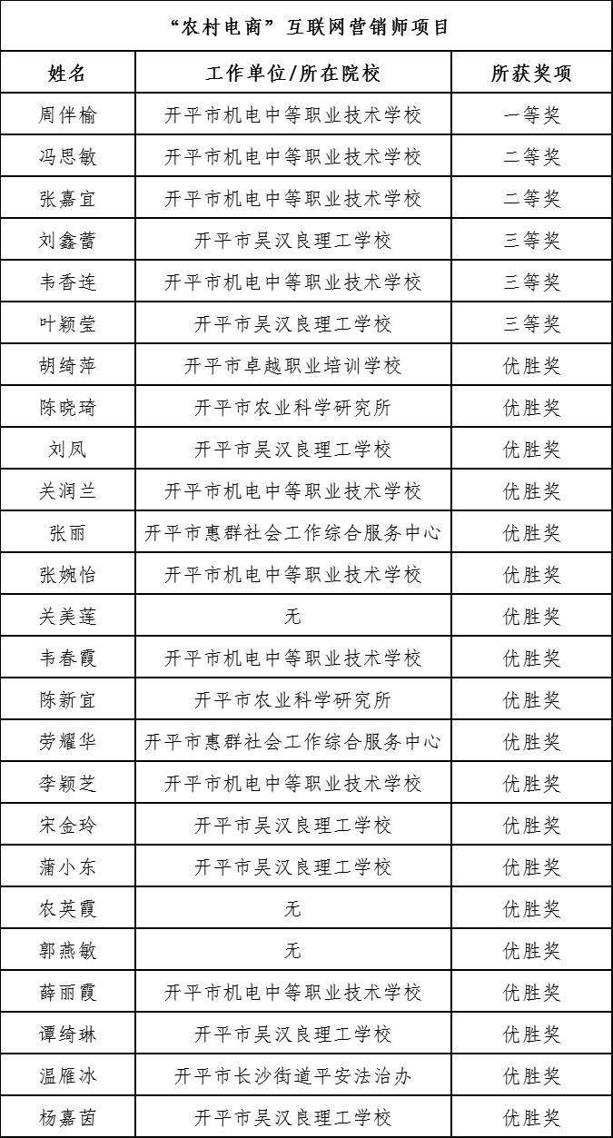 根据《关于举办2024年海棠直播 “侨”夺天工职业技能竞赛的通知》(开人社〔2024〕129号),现将2024年海棠直播 “侨”夺天工职业技能竞赛获奖名单公告如下: