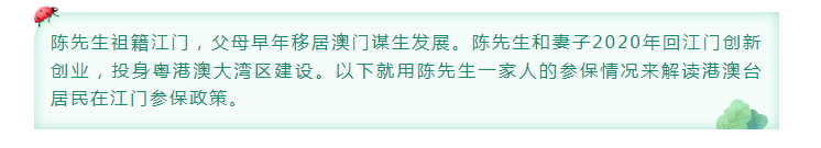 第二类:灵活就业人员(含无雇工的个体户)。此类人员办理广东省就业登记证明,可自行选择购买职工基本养老保险或职工基本医疗保险。持港澳台居民居住证可在我市税务大厅办理参加企业职工基本养老保险或职工基本医疗保险登记。陈先生的妻子随陈先生到江门居住生活,日常除了照顾家庭、教育子女外,还是独立化妆师,她在办理港澳台居民居住证后,即可选择参加职工基本养老保险或职工基本医疗保险。