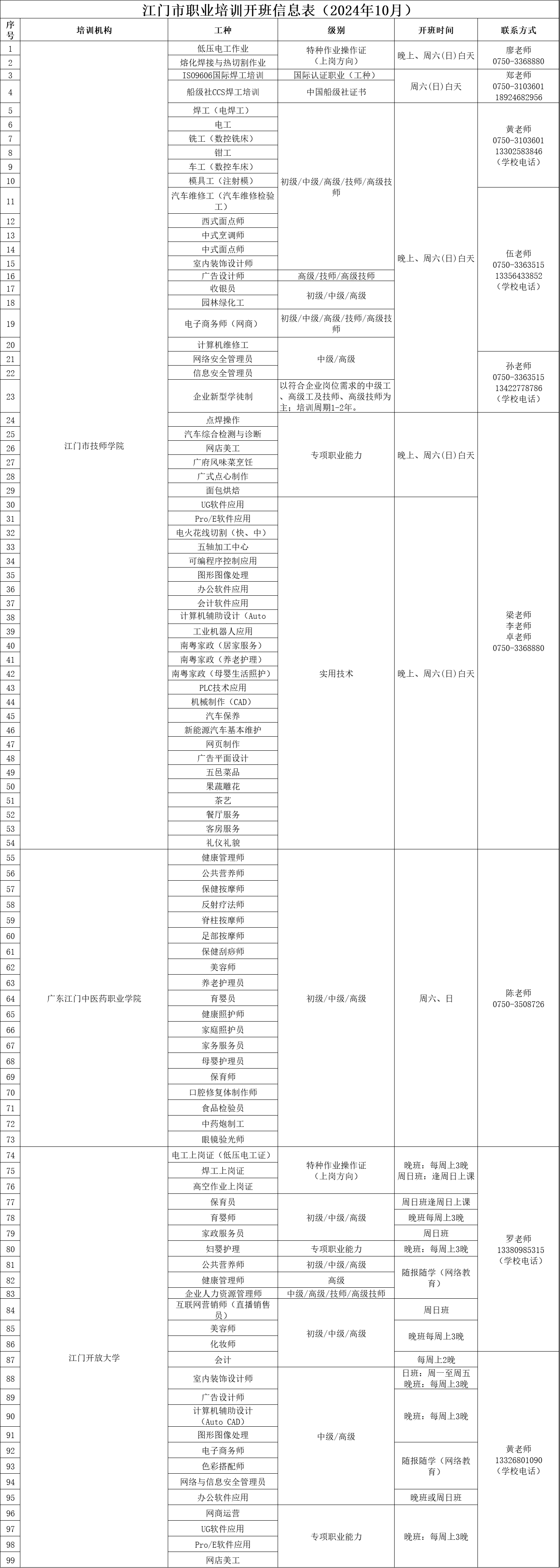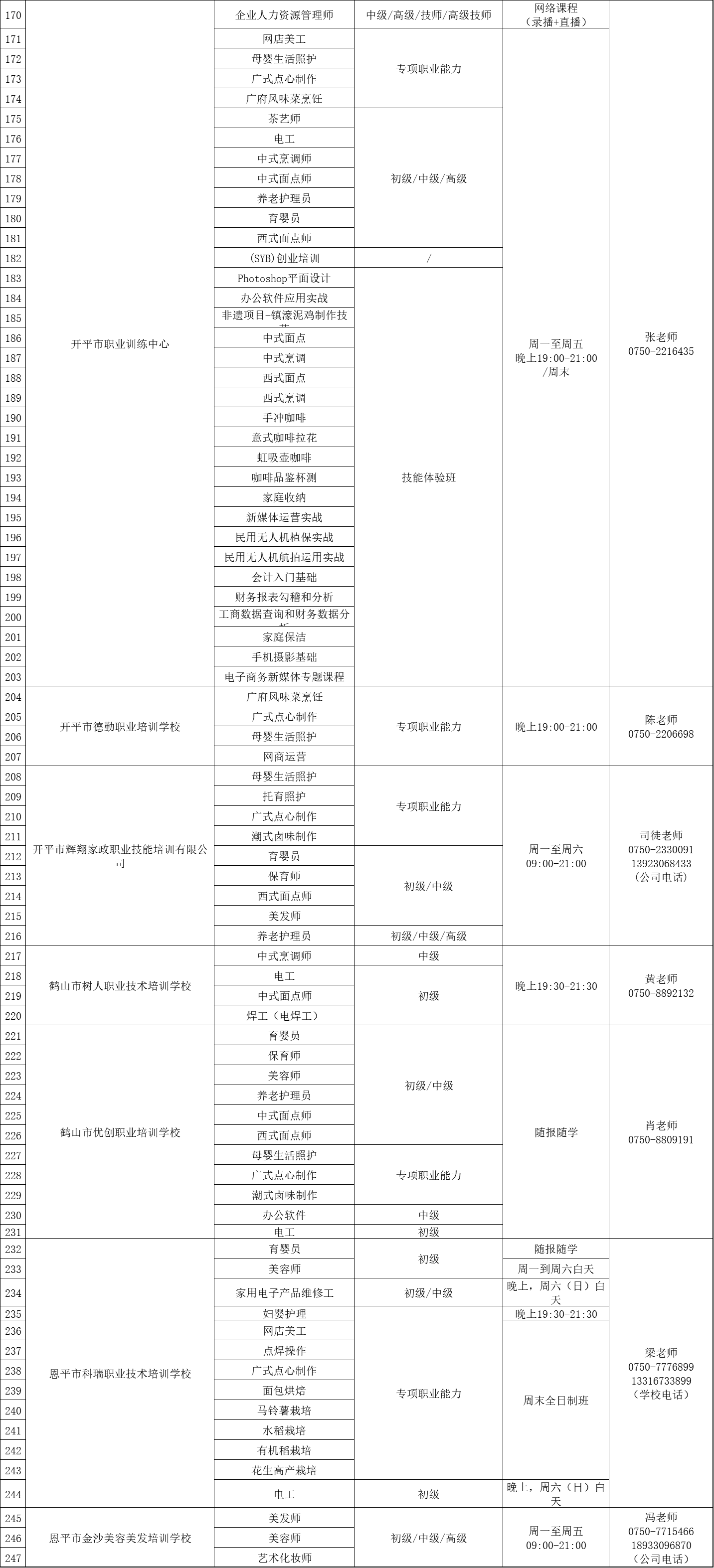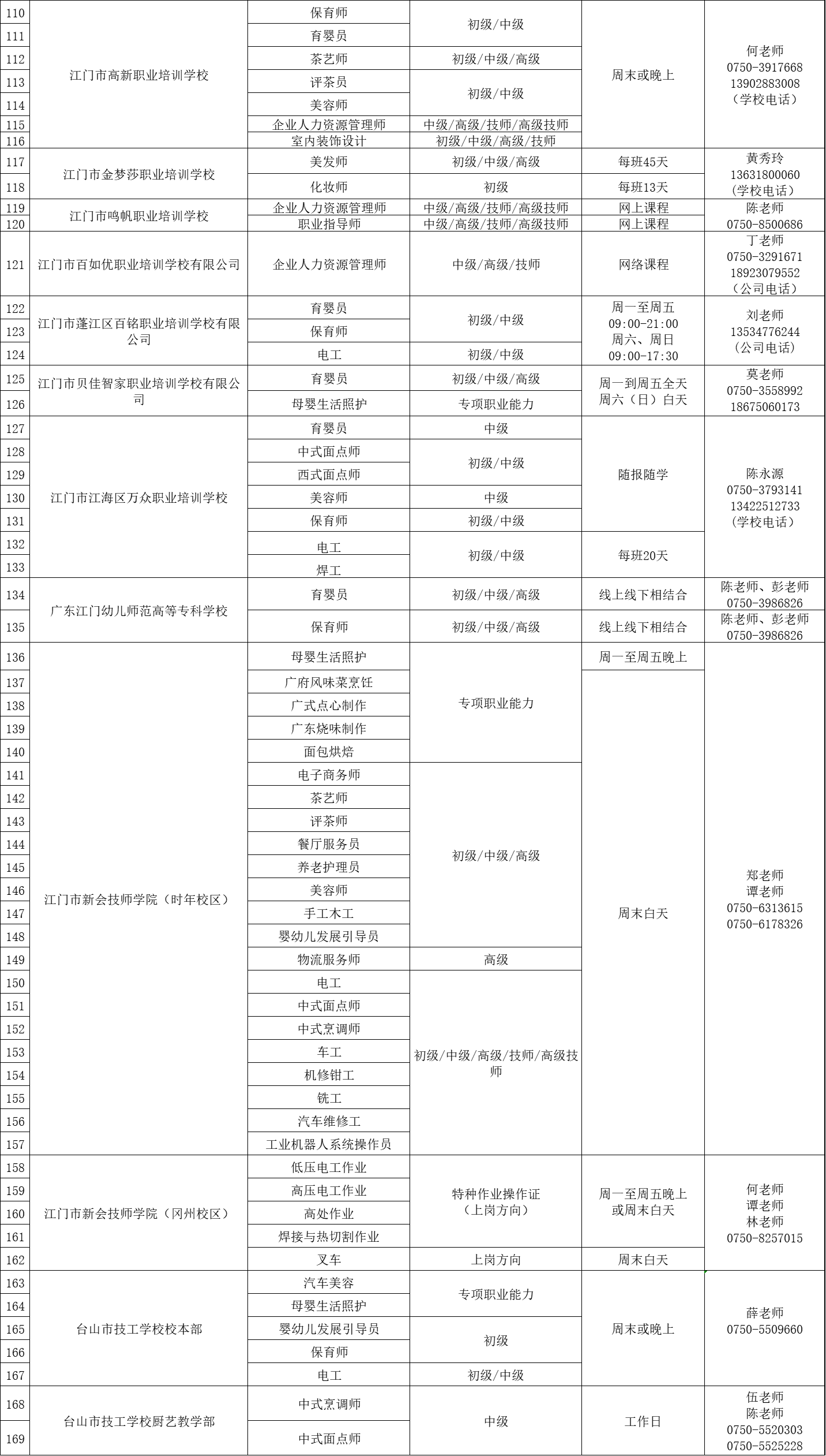 全市各类职业培训机构推出