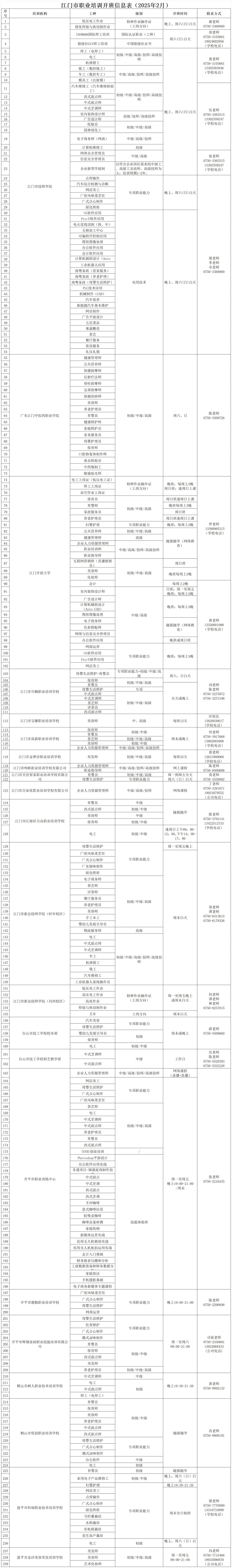全市各类职业培训机构推出