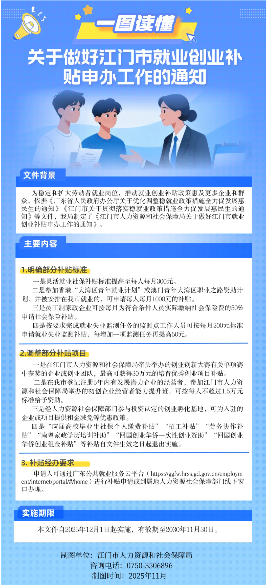 咨询电话:江门市人力资源和社会保障局0750-3506896