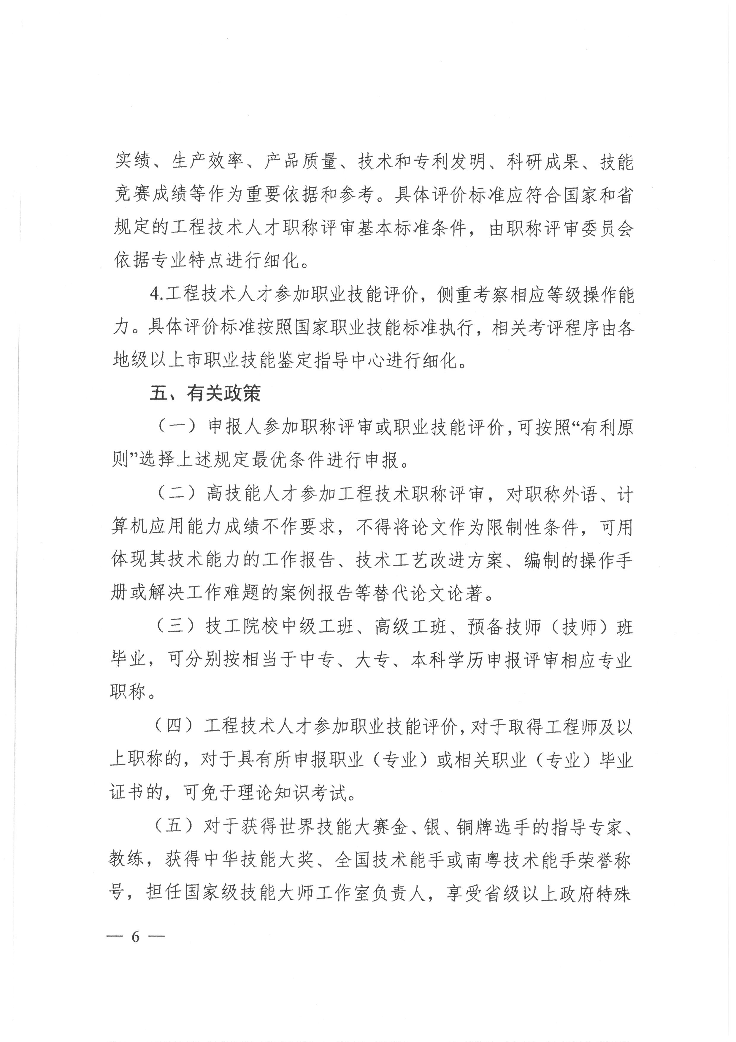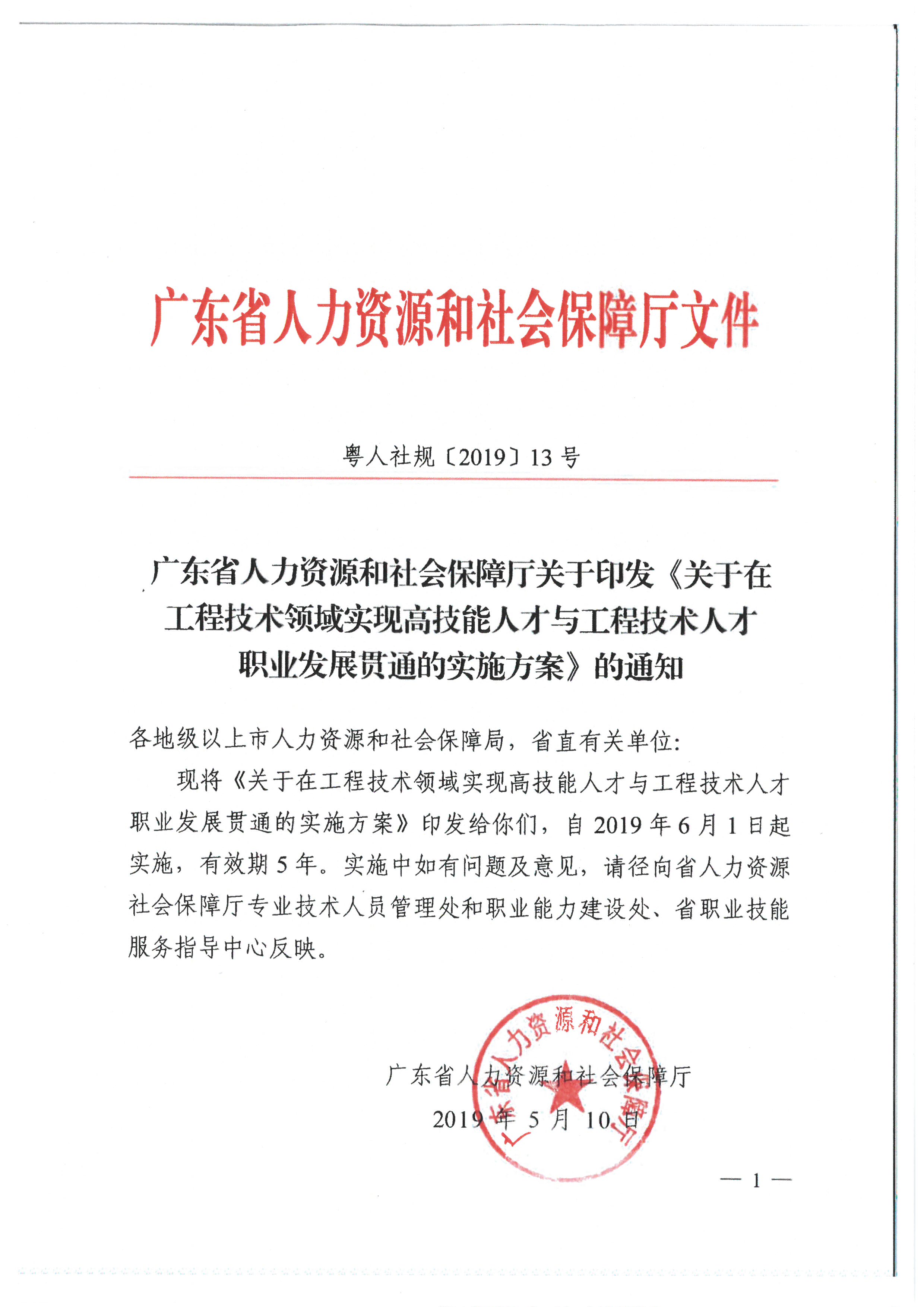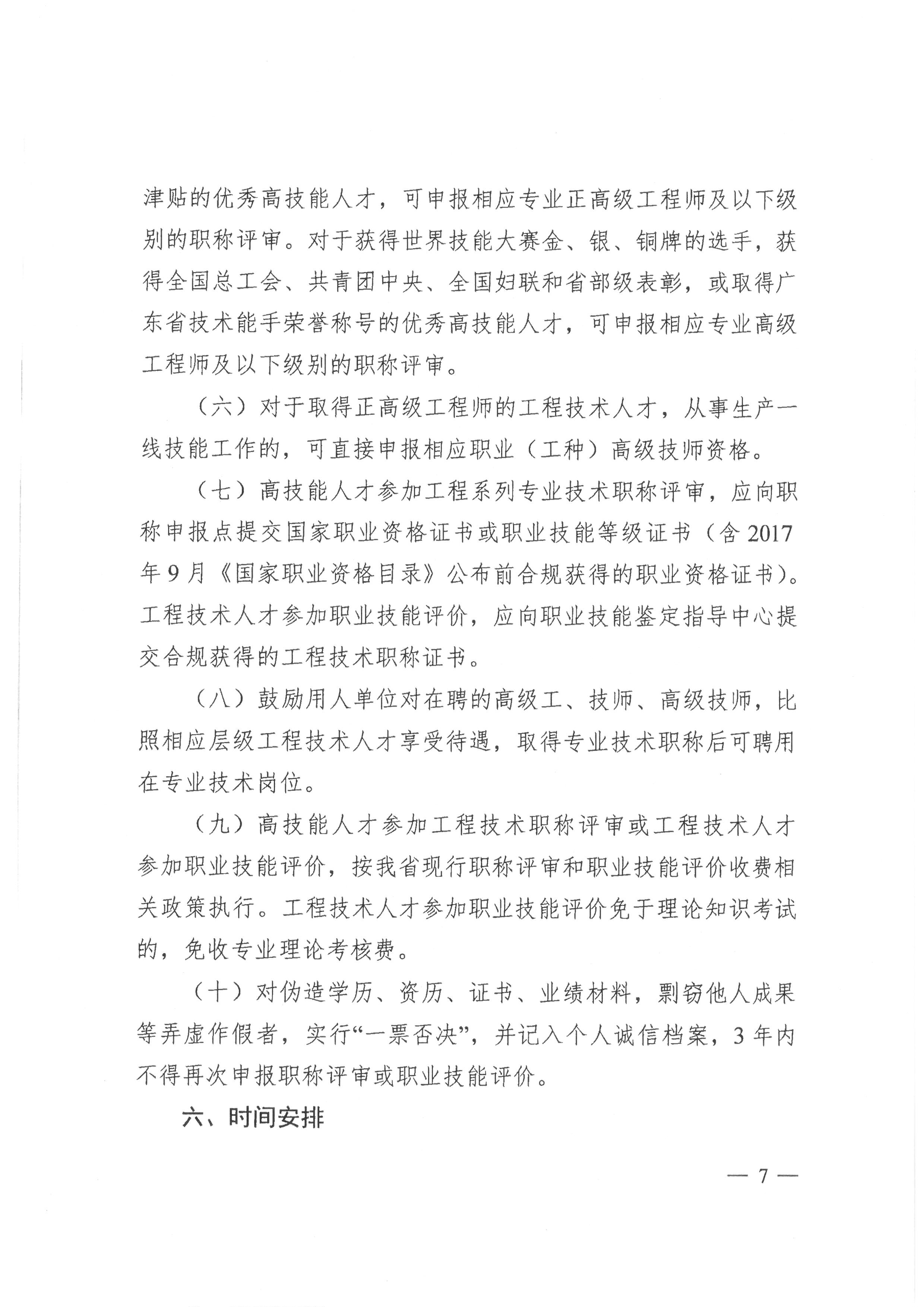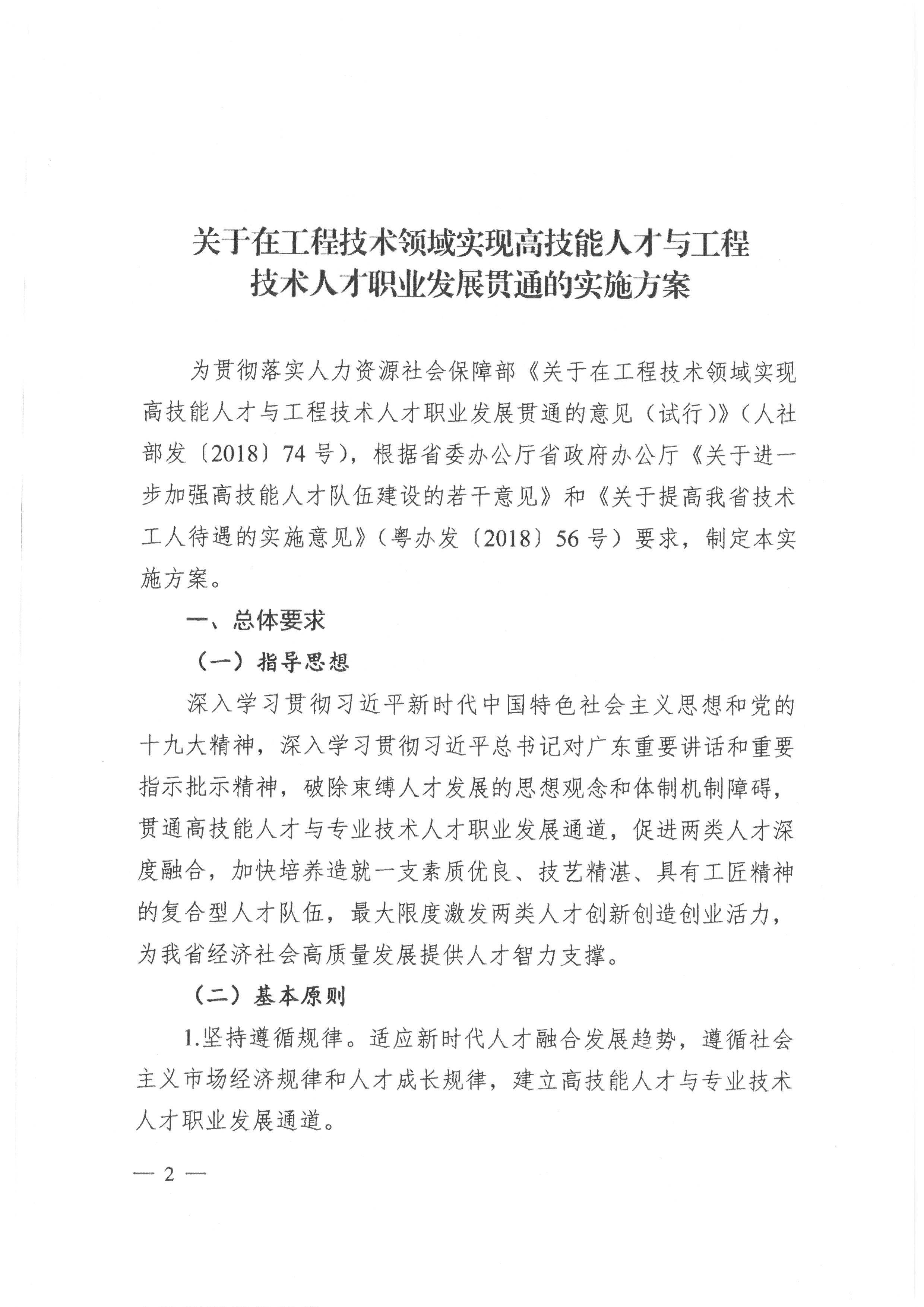 关于在工程技术领域实现高技能人才与工程技术人才职业发展贯通的实施方案(粤人社规[2019] 13号)