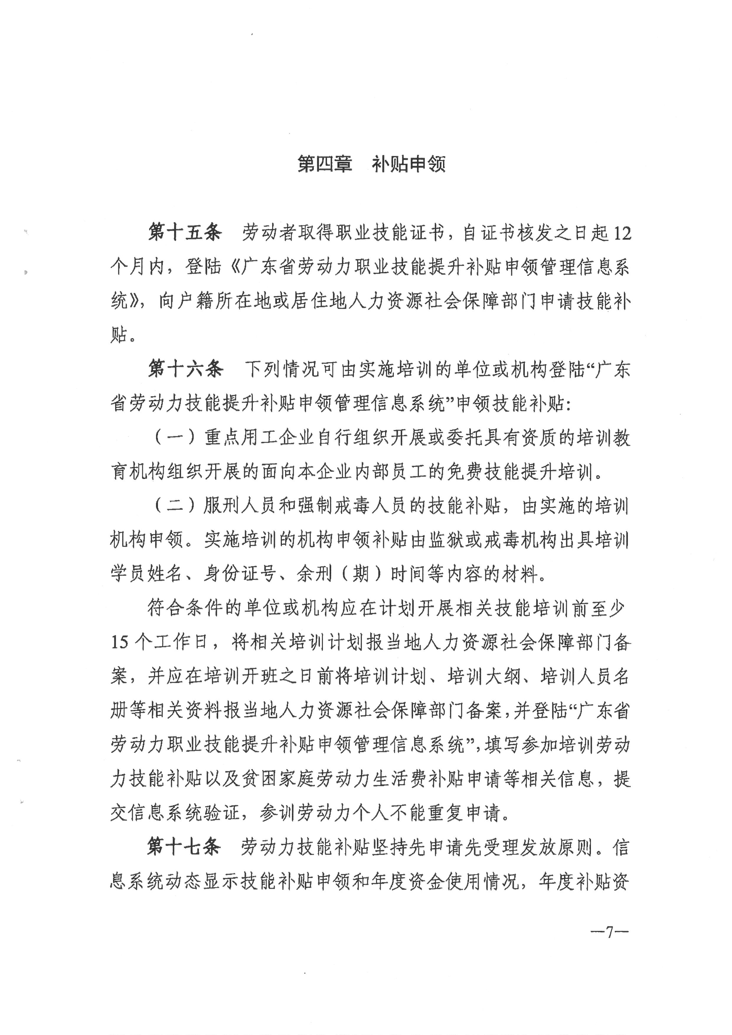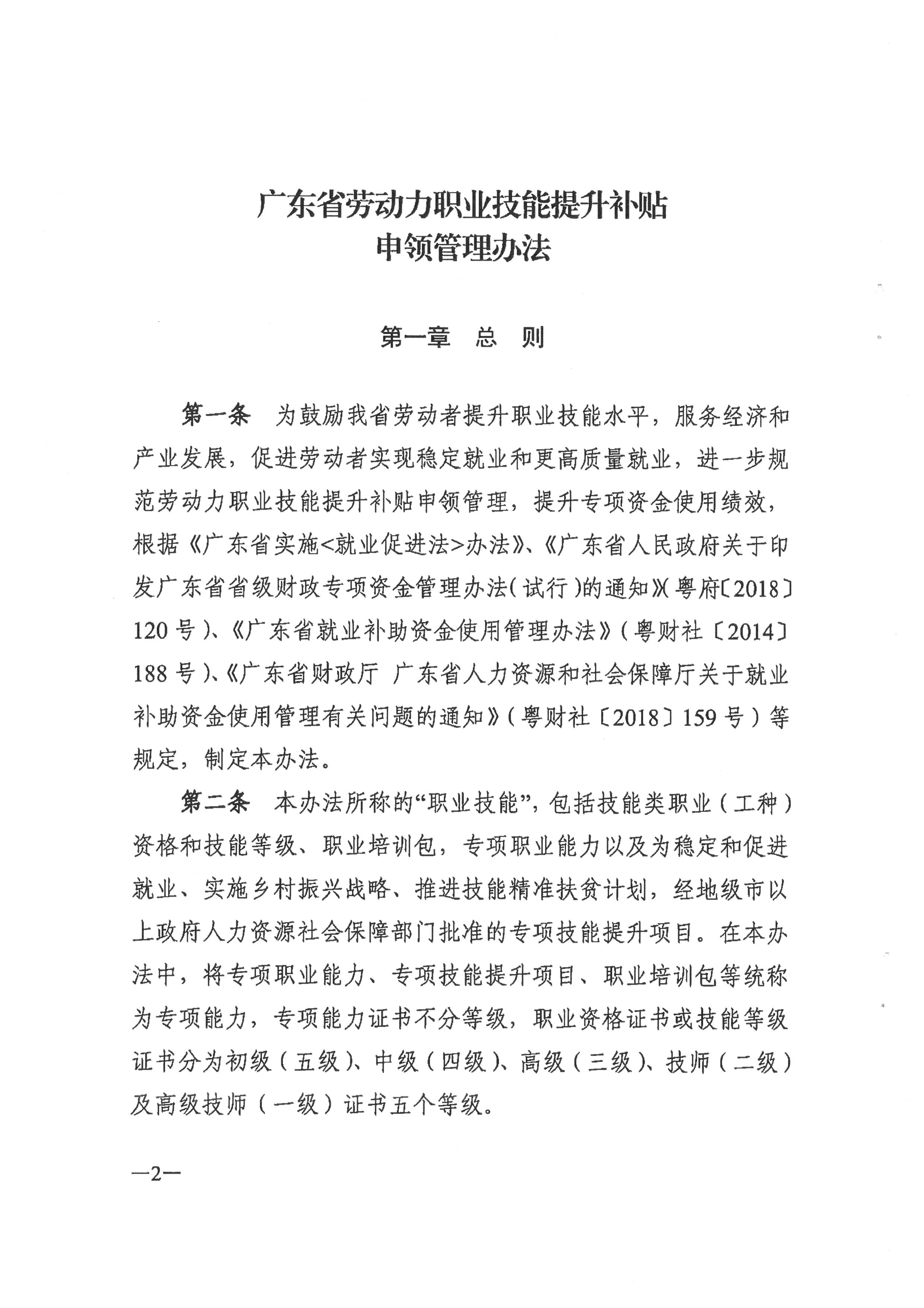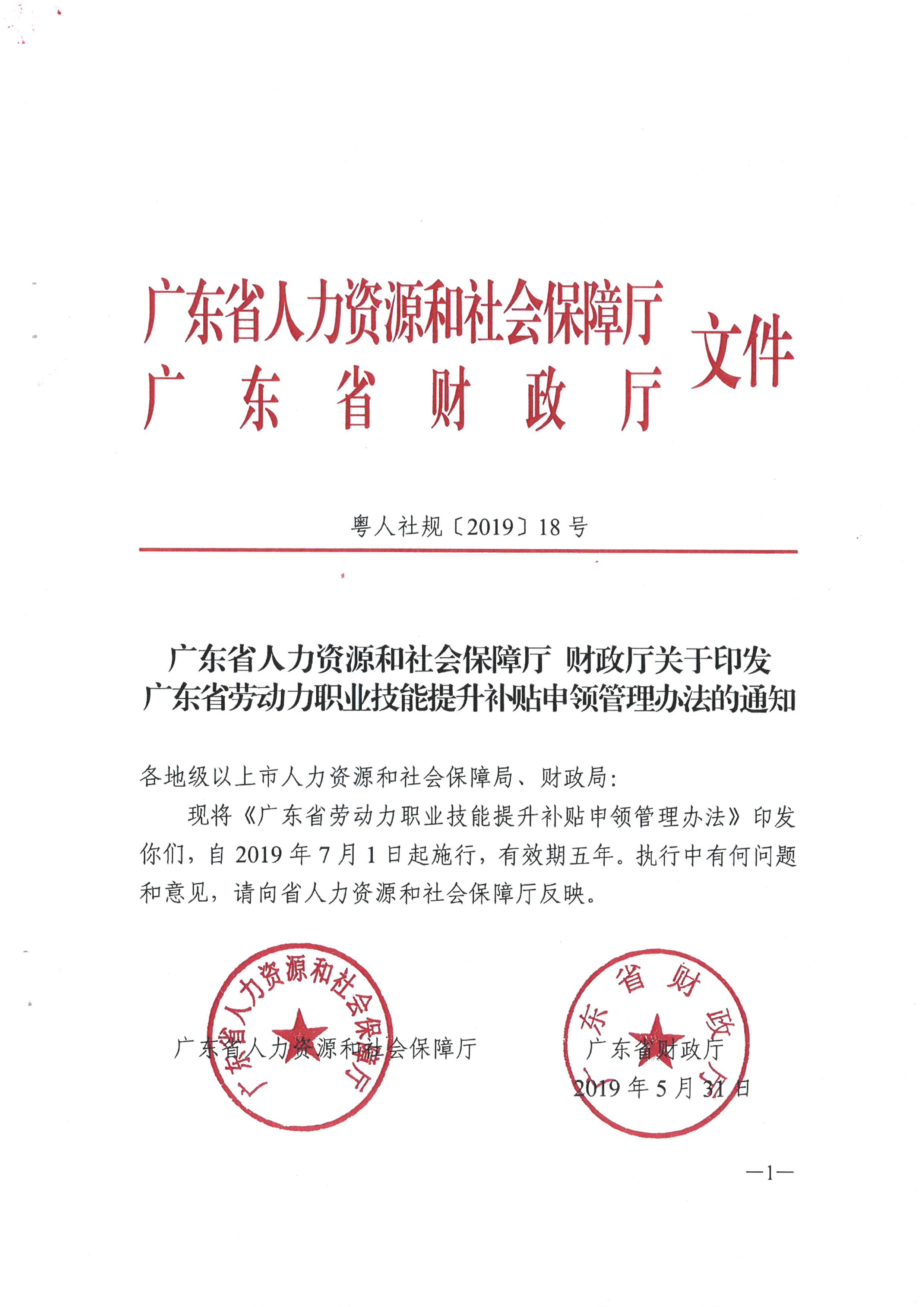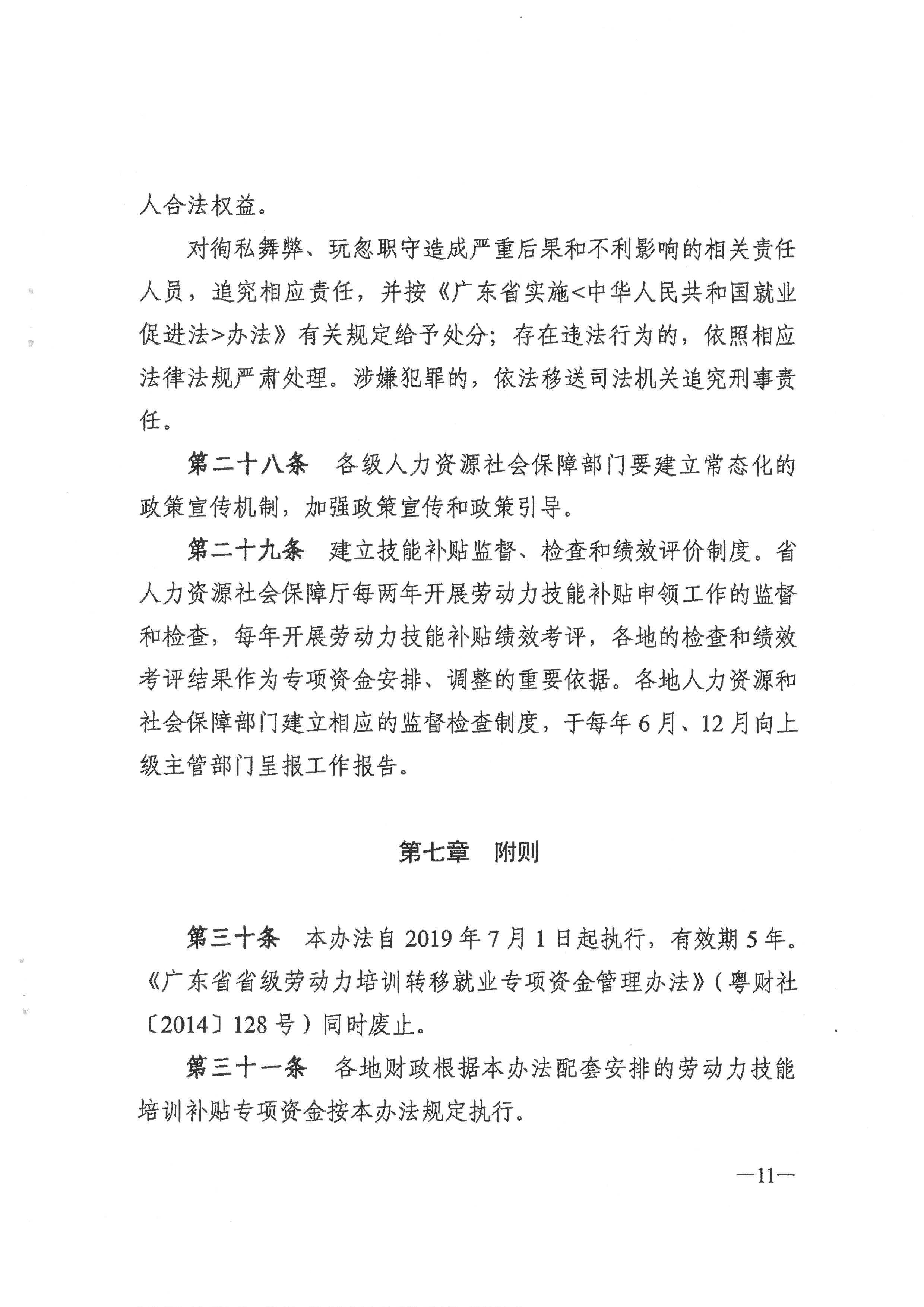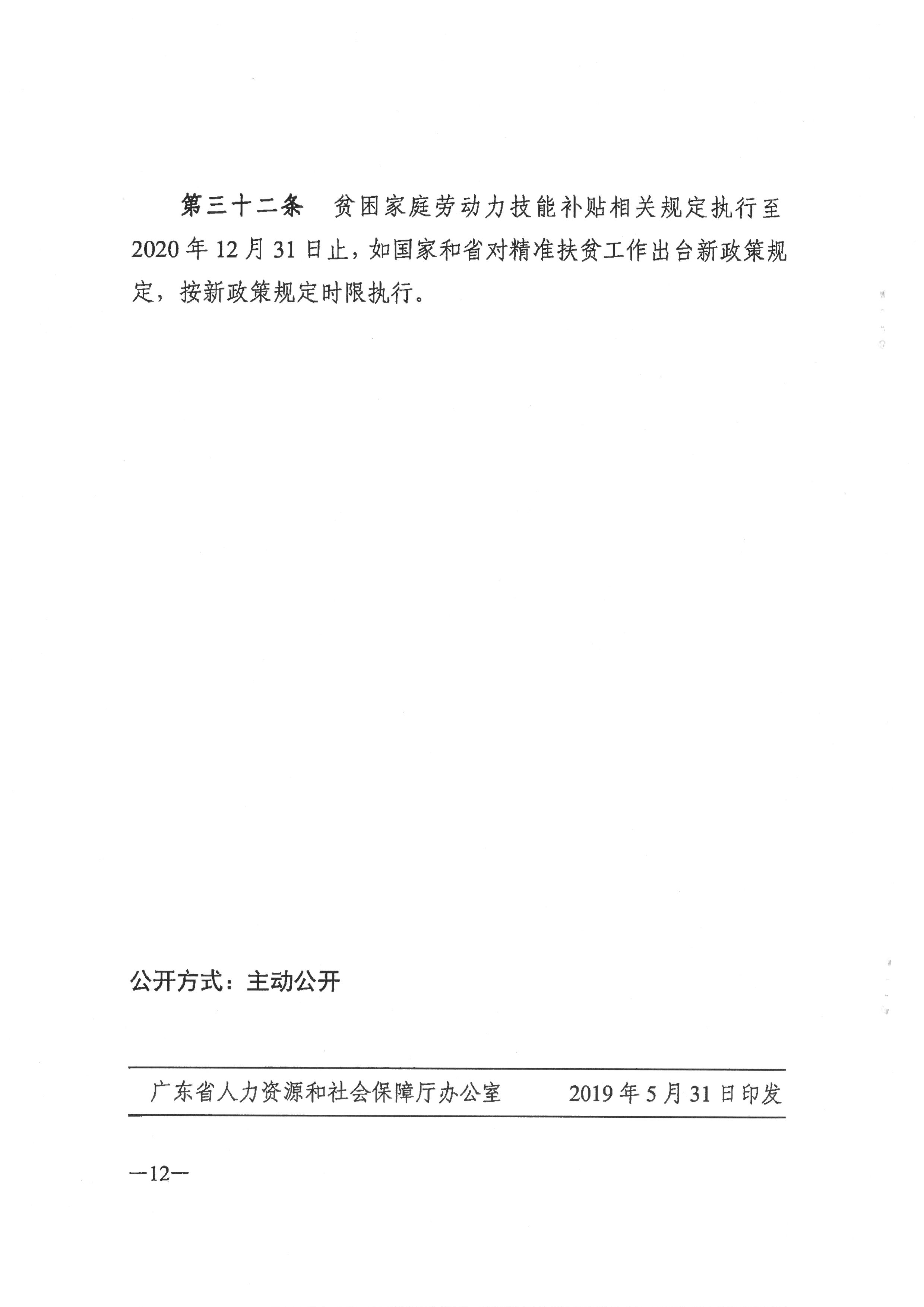 广东省人力资源和社会保障厅 财政厅关于印发广东省劳动力职业技能提升补贴申领管理办法的通知(粤人社规[2019] 18号)