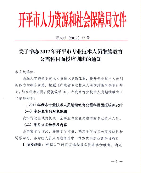 关于举办2017年海棠直播 专业技术人员继续教育公需科目面授培训班的通知