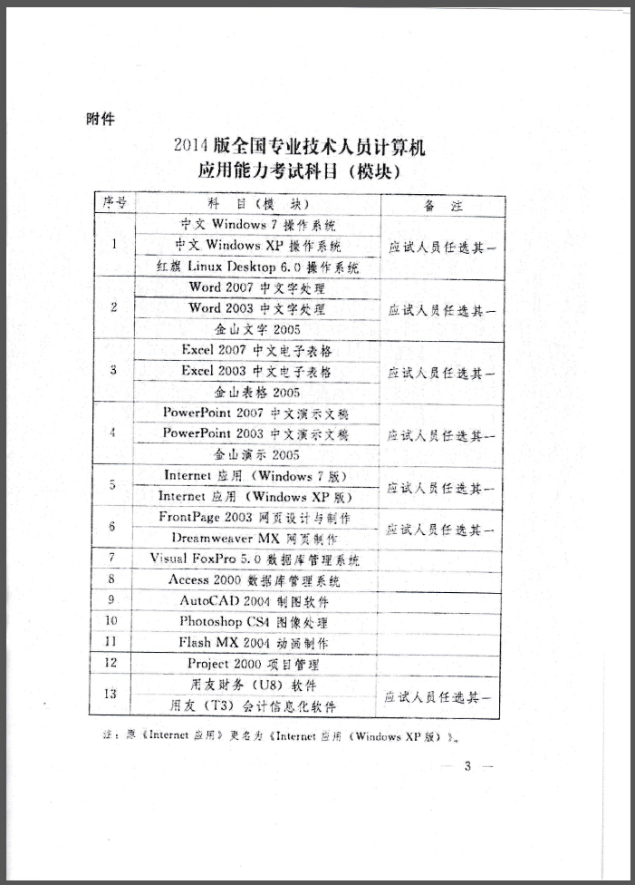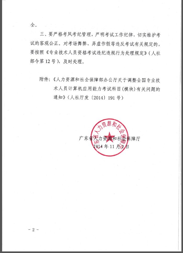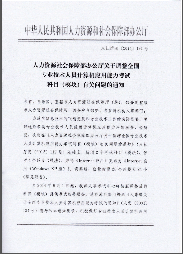 转发人社部关于调整计算机能力考试科目的通知(粤人社函[2014]2325号