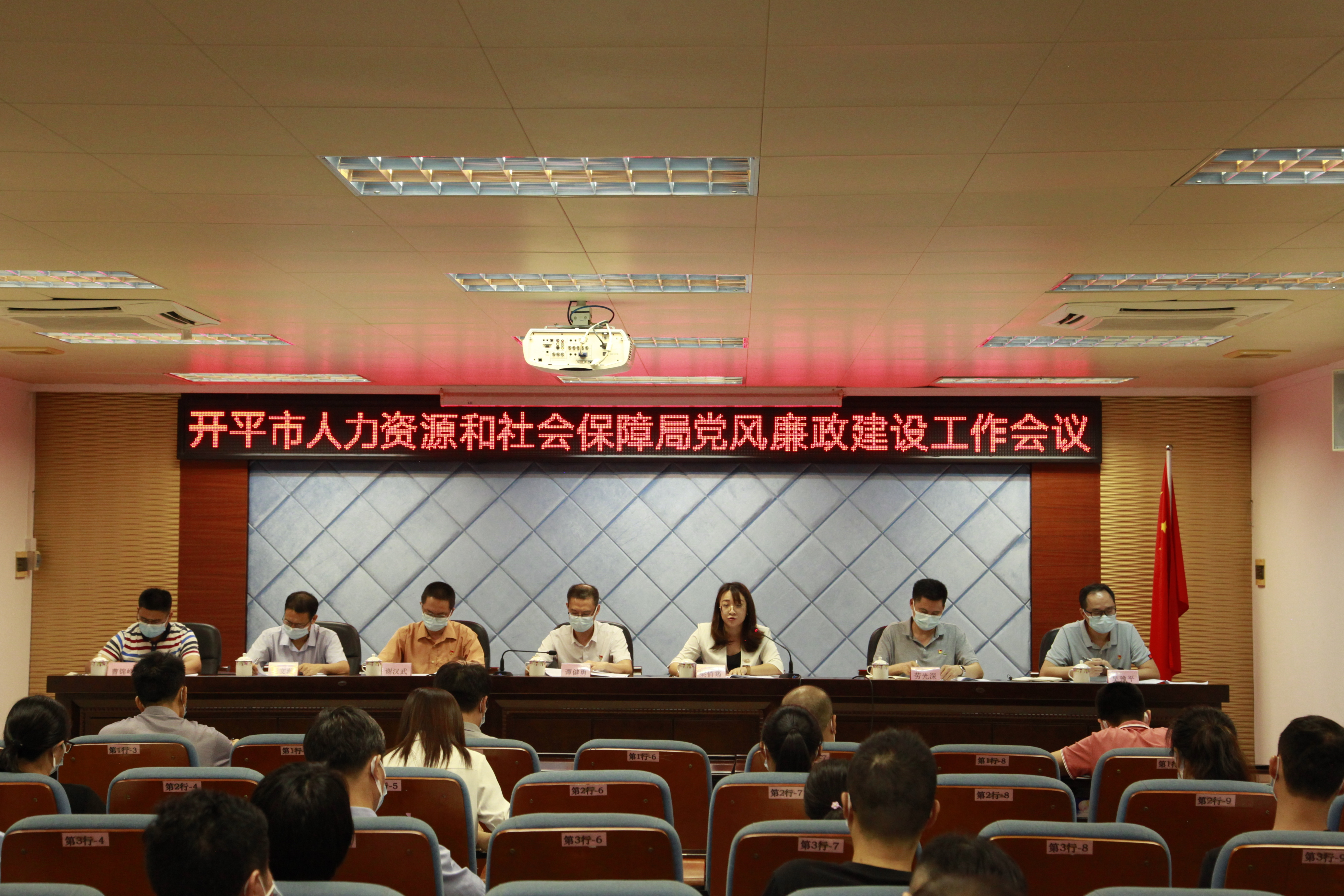 6月21日下午,海棠直播 人社局召开2021年度党风廉政建设工作会议,会议由局党组成员、三级主任科员吴豫平同志主持,全局及下属事业单位60多名党员干部参加本次会议。