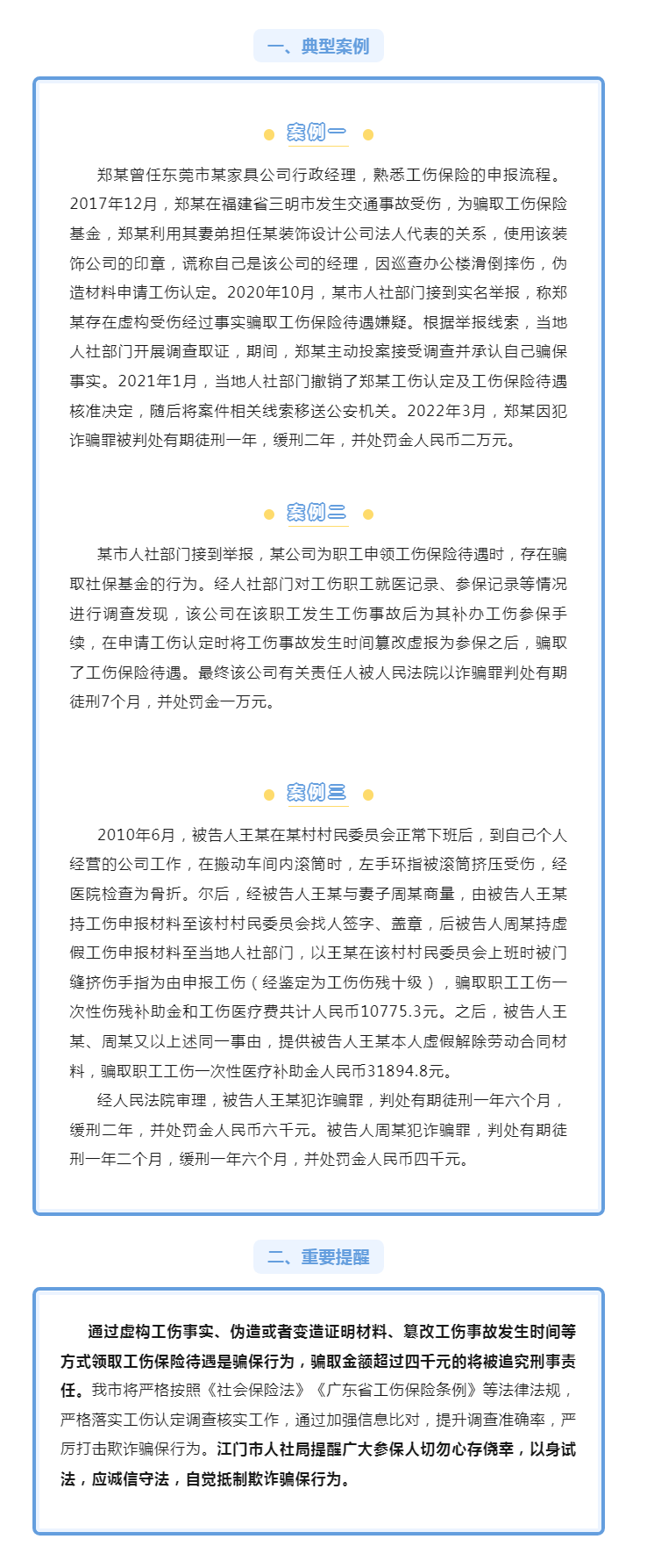 【人社普法速递 | 第一百八十九期】以案说法—伪造材料骗取工伤保险待遇将受罚!