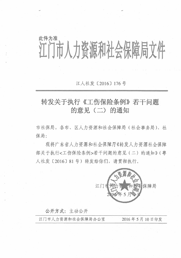转发关于执行《工伤保险条例》若干问题的意见(二)的通知