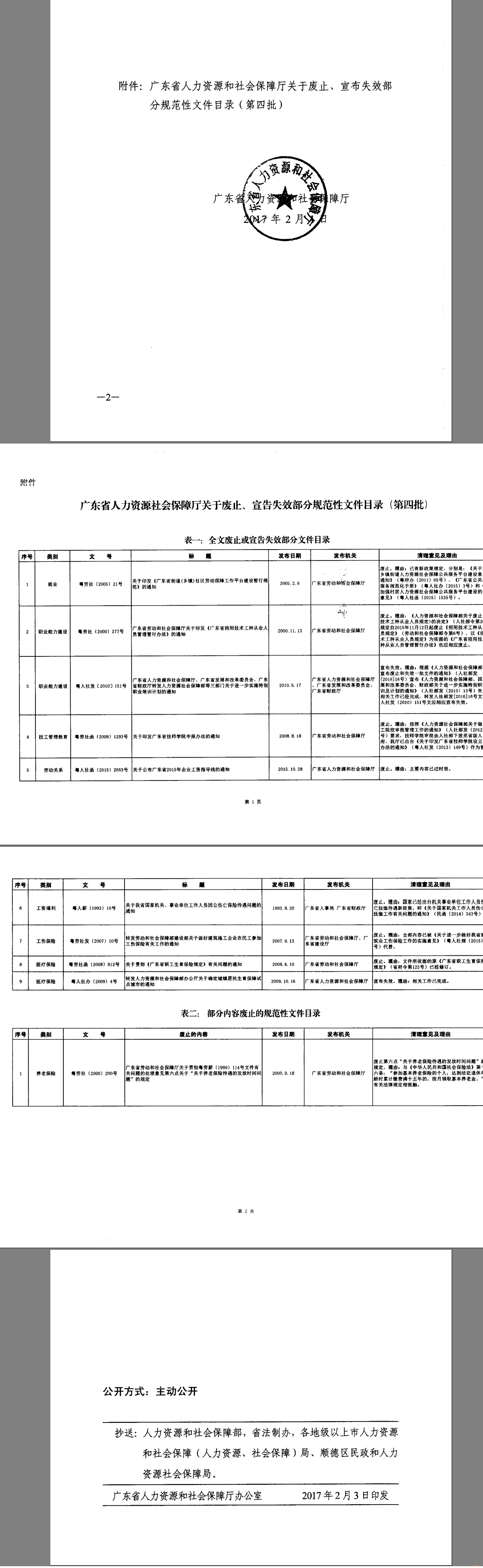 粤人社规[2017]3号 省人社厅关于公布废止、宣布失效部分规范性文件目录的公告
