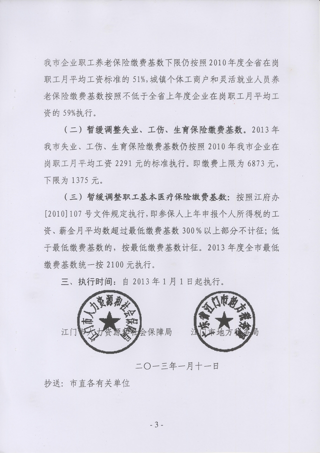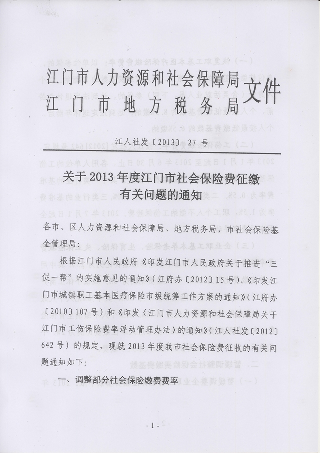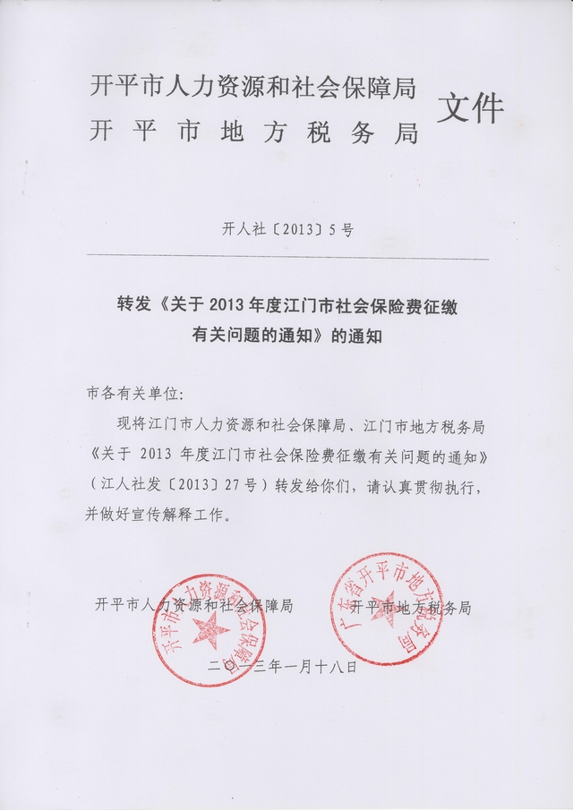 转发《关于2013年度江门市社会保险费征缴有关问题的通知》的通知