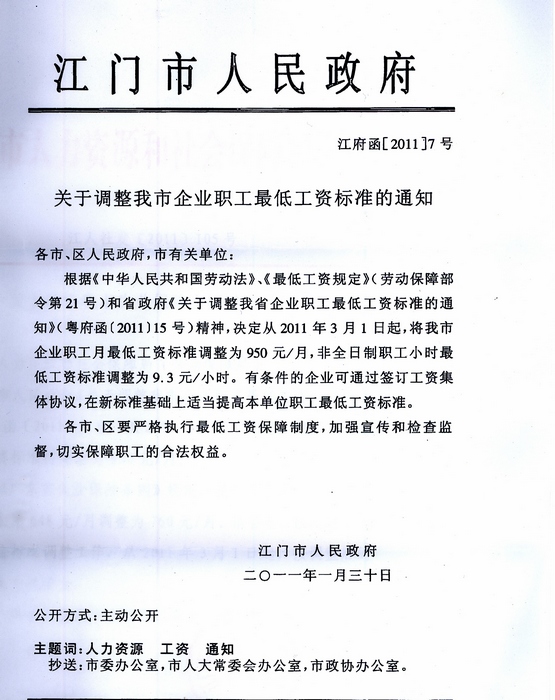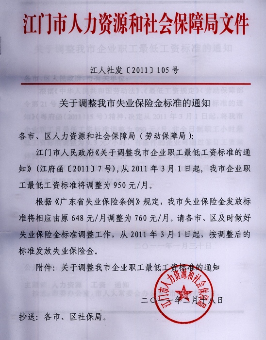 关于调整我市失业保险金标准的通知