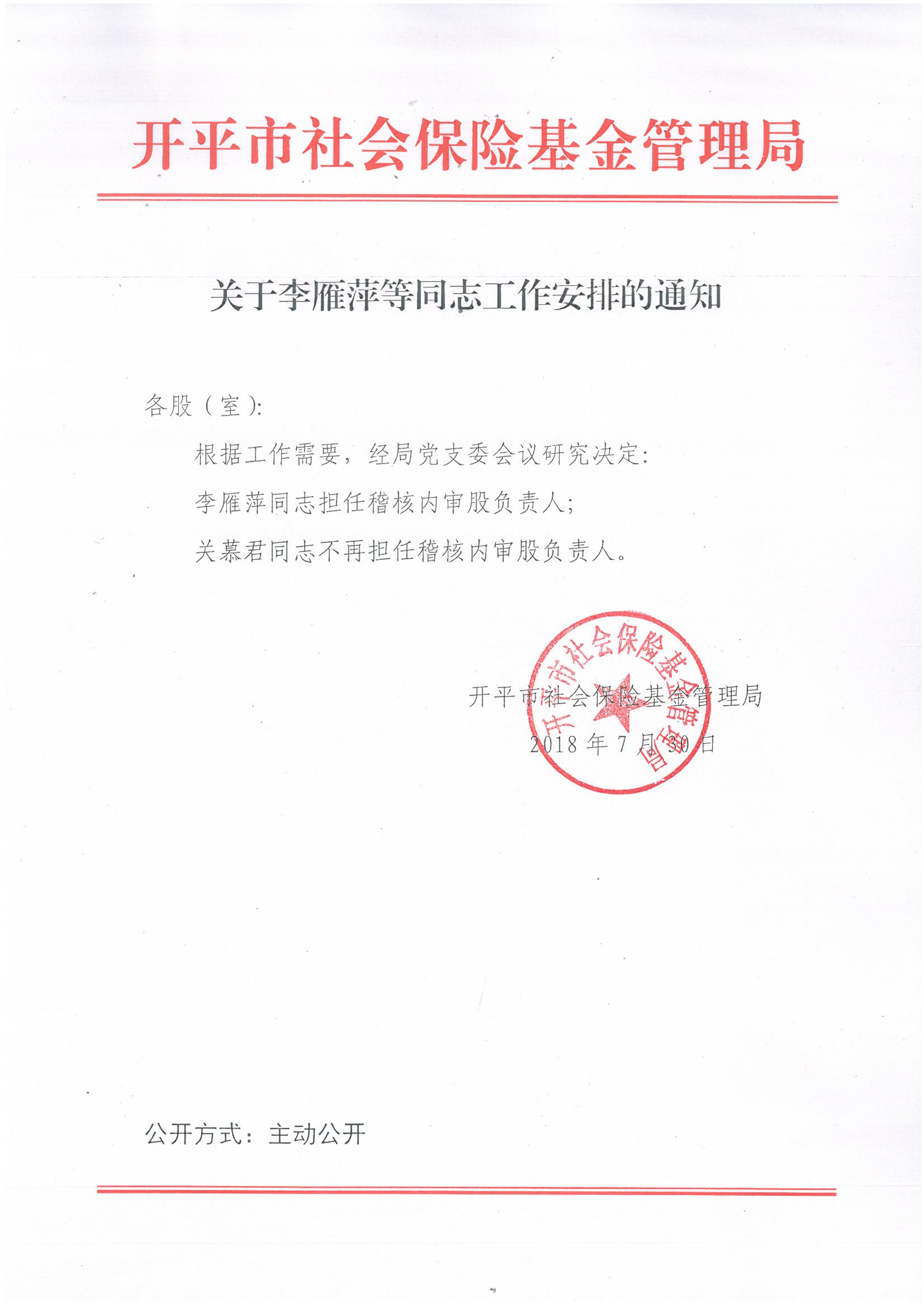 关于李雁萍等同志工作安排的通知
