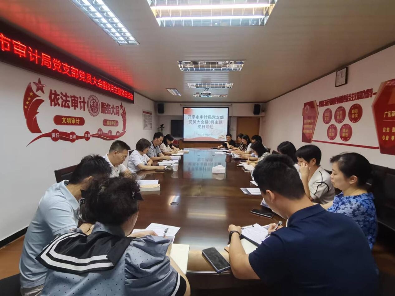 8月25日下午,市审计局党支部组织开展党员大会暨主题党日活动,深入学习习近平新时代中国特色社会主义思想,进行党支部换届选举,促进党支部工作高质量深入推进。