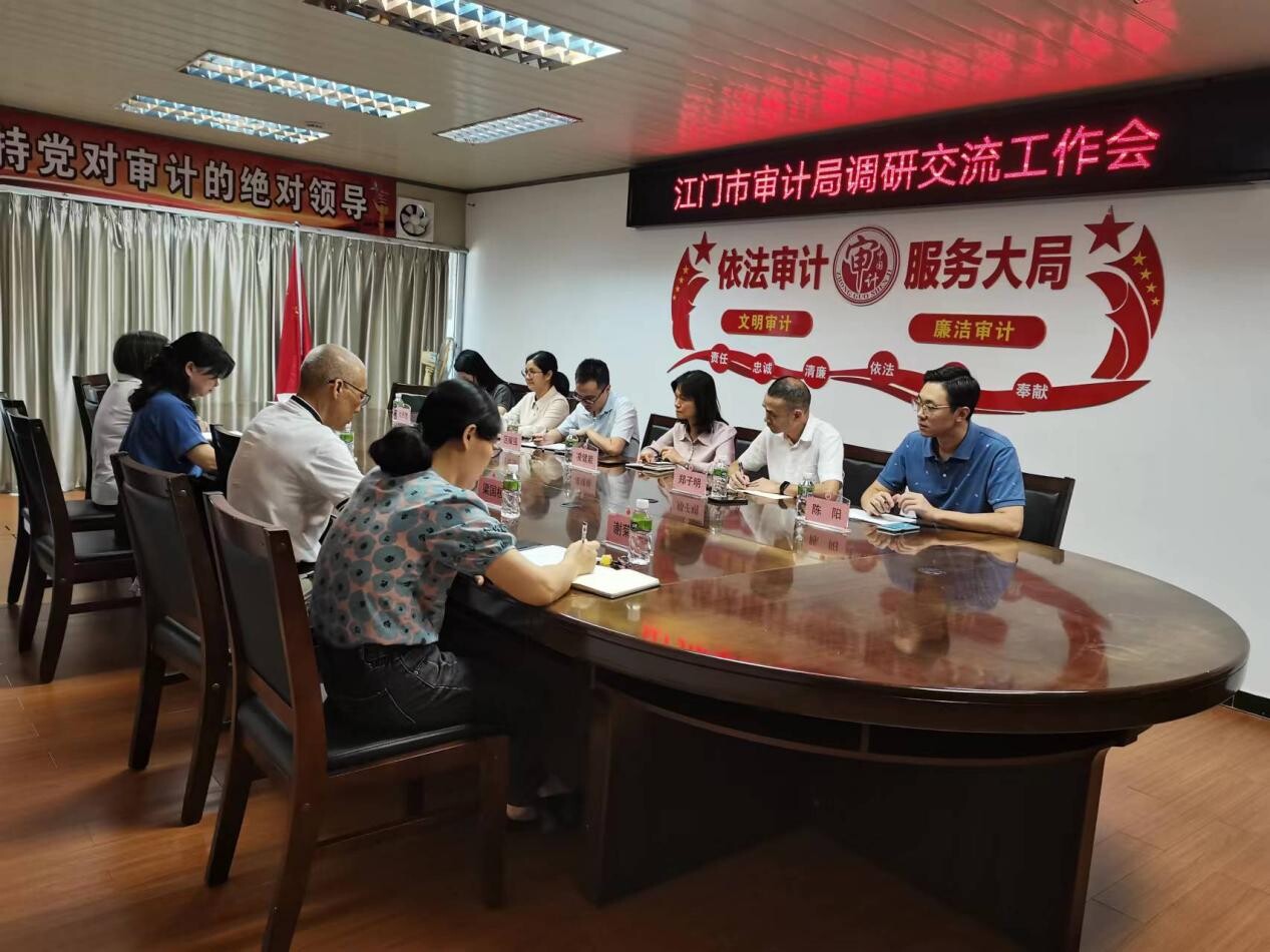 10月26日下午,江门市审计局凌健能、郑子明两位副局长带队到我局开展主题教育调研工作。江门市审计局相关干部和我局领导班子成员参加调研座谈会。