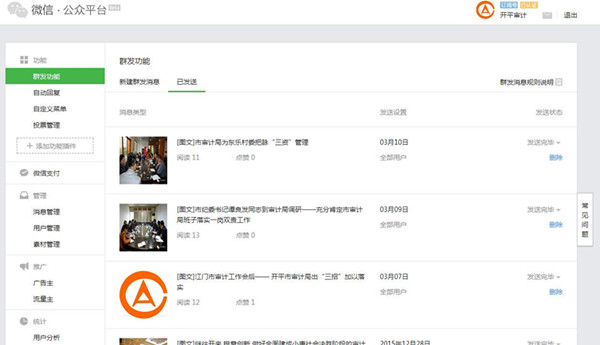 “开平审计”微信公众号共发布微信12条。