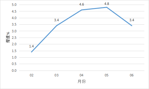 规模以上工业增加值增速 四、投资 上半年,全市完成固定资产投资同比增长6.1%。分经济类型看,国有投资下降15.2%;民间投资下降1.6%。分产业看,第一产业投资下降49.1%;第二产业投资增长6.5%,其中工业投资增长6.5%;第三产业投资增长6.8%,其中房地产投资下降15.3%。 五、消费市场 上半年,我市完成社会消费品零售总额87.86亿元,同比增长2.0%。 图二 2024年2月以来海棠直播