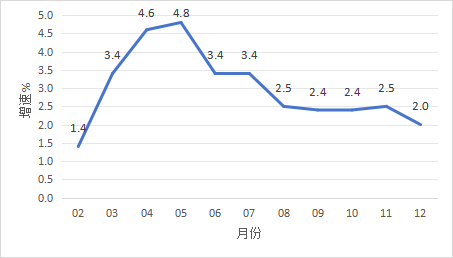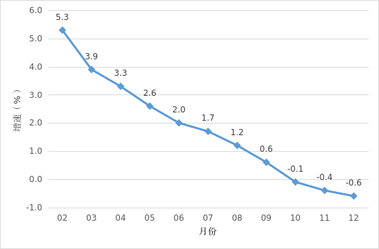 实现地区生产总值515.47亿元,同比增长2.5%。其中,第一产业增加值59.07亿元,同比增长4.7%;第二产业增加值256.34亿元,增长3.9%;第三产业增加值200.06亿元,增长0.1%。全市三次产业结构比为11.5∶49.7∶38.8。 二、农林牧渔业 2024年,全市实现农林牧渔业总产值114.79亿元,同比增长5.4%。其中,农业产值40.96亿元,同比增长4.1%;林业产值3.26亿元,增长10.0%;牧业产值47.74亿元,增长6.3%;渔业产值13.63亿元,增长3.0%;农林牧渔专业及辅助性活动产值9.21亿元,增长10.2%。 三、工业生产 2024年,开平规模以上工业企业累计完成工业增加值132.04亿元,同比增长2.0%。 分经济类型看,股份制企业增长7.4%;外商及港澳台商投资企业下降2.6%;私营企业增长1.9%。分门类看,采矿业增加值下降38.4%,制造业增加值增长1.1%,电力、热力、燃气及水生产和供应业增加值增长68.5%。 2024年全市工业用电量增长6.5%。 图一 2024年2月以来海棠直播