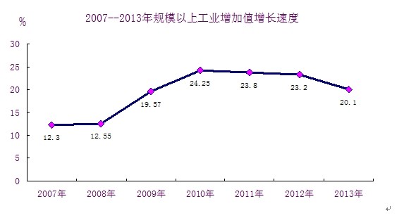 注:1、本公报中2013年数据为初步统计数,统计图中2007--2012年数据为年报数。