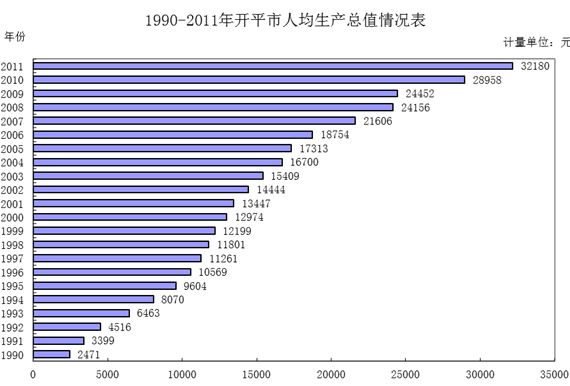 人均地区生产总值是衡量一个地区收入水平的标志,也是作为划分经济发展阶段的重要指标。根据江门统计年鉴1990年以来海棠直播