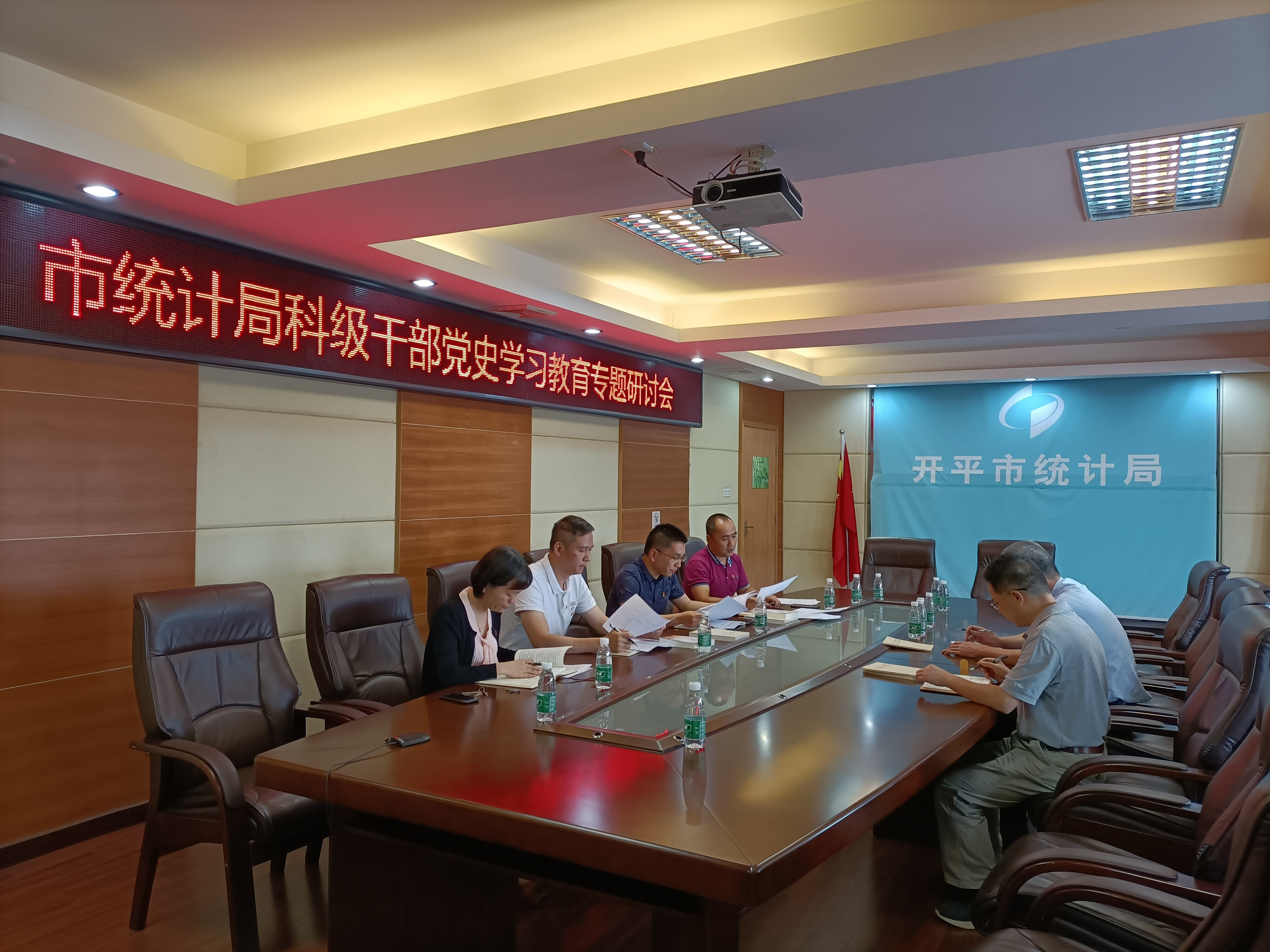 市统计局召开科级干部党史学习教育专题研讨会 发挥“关键少数”作用推动党史学习教育走深走实 4月20日,开平市统计局召开科级干部党史学习教育专题研讨会,进一步巩固提升学习成果,推动党史学习教育走深走实。局党组书记、局长李健鹏同志主持会议并讲话。 会上,党组书记、局长李健鹏同志围绕“学党史悟思想”、“学党史办实事”、“学党史开新局”作了研讨发言。然后,参会人员分别结合学习内容与自身工作实际依次进行交流发言。大家一致表示,要深入学习习近平总书记在党史学习教育动员大会上的重要讲话精神,进一步深化对党的百年奋斗史、对马克思主义中国化成果特别是习近平新时代中国特色社会主义思想的理解,增强“四个意识”、坚定“四个自信”、做到“两个维护”,自觉把思想和行动统一到习近平总书记重要讲话精神上来。 李健鹏同志作总结讲话时指出,市统计局要把开展党史学习教育作为当前和今后一个时期的首要政治任务,一方面,要切实发挥领导干部的示范带头作用,把党史学习教育摆在突出位置,引导全体党员干部提高政治站位,深刻认识党史学习教育的重大意义,把握好学习教育的目标任务、基本要求和核心要义,在学史中进一步坚定理想信念、强化政治担当、提高履职能力、为群众办实事;另一方面,要加强党史宣传,充分利用好局网站、宣传栏、粤政易、微信群等平台,激发广大党员群众学习党史、宣传党史的热情,在全局掀起党史学习教育热潮,共同营造学习党史、传承精神、勇于奉献的良好氛围。