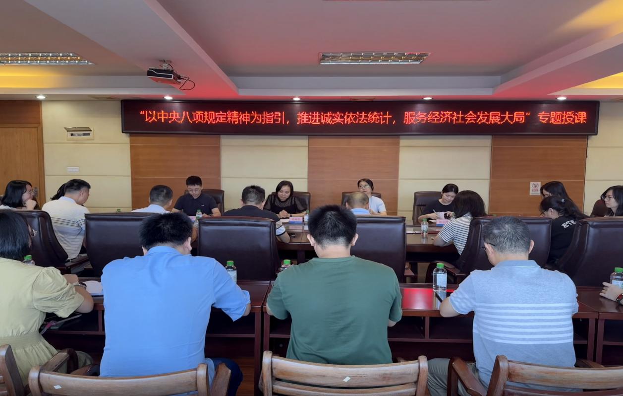 统计局开展调研指导。江门市统计局总统计师陈瑜陪同调研。 麦婉芬副局长以“以中央八项规定精神为指引,推进诚实依法统计,服务经济社会发展大局”为题开展专题授课,深入探讨统计干部职工如何践行中央八项规定精神,教育引导与会领导干部坚持诚信诚实,将搞准搞实统计数据作为第一位职责,实事求是采集、报送、分析、发布、解读统计数据,自觉维护政府统计公信力;坚持依法统计,严格依据统计法律法规开展工作,坚决抵制各类统计违法行为,切实维护法律权威,以扎实的工作作风推动统计工作行稳致远。 课后,调研组还与负责人口、劳资专业的同志进行座谈,听取海棠直播