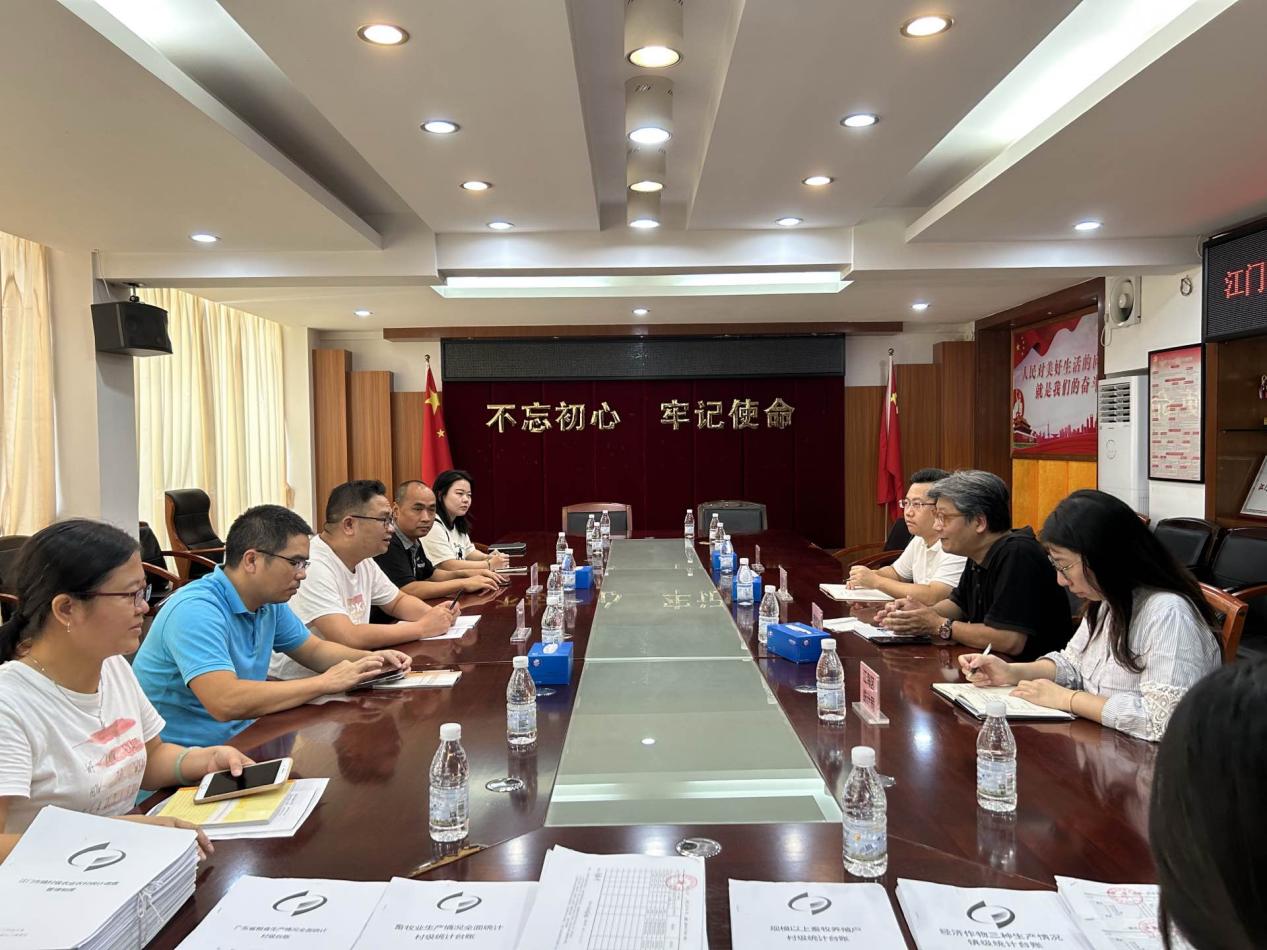 为规范农村基层统计工作,切实为第四次全国农业普查做好前期准备,2025年7月下旬至8月中旬,江门市统计局开展农村统计基层基础建设调研交流活动。8月11日至12日,江门市统计局联合蓬江区统计局、江海区统计局到我市进行实地调研。 江门市工作组一行先后赴我市4个镇、8个村进行调研交流,分别在苍城镇、马冈镇、赤水镇以及蚬冈镇人民政府召开农村统计基层基础工作座谈交流会,交流工作做法、总结先进经验。同时查阅各镇2024年农业生产条件101基层情况表、村农业生产用地台账、农业大户名录等台账资料,检查资料完整性、数据逻辑关系、填报的规范性等方面内容。 随后,在每个镇随机抽选2个村开展实地调研。通过村台账查阅、实地查看等方式,从制度设置、数据来源、人员培训、平台使用、台账整理等方面,认真检查并指导各村农村统计基层基础工作建设情况。工作组指出,要重点关注发包地、自留地、开荒地等不同类别的农用地使用情况,根据其不同特征分类做好统计工作。 此次调研,江门市统计局对我市农村统计基层基础工作给予充分肯定。下一步,我市将按照工作组的现场指导要求,切实加强农业农村基层统计工作,为我市正式开展四农普积累经验、打好基础。