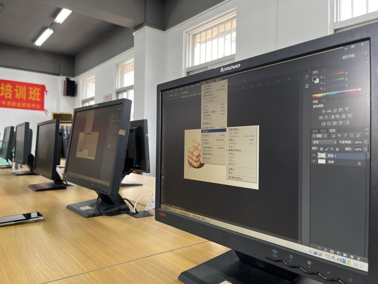 本次职业技能提升培训班包含网店美工及视频剪辑两门课程,采取“线上讲解+线下实操”方式授课,涵盖产品原图处理、宣传设计、视频滤镜与转场应用、字幕设计与音乐处理等多方面内容。现场由专业老师针对性地进行一对一指导答疑,指引学员利用实机进行模拟操作,促进退役军人更全面地掌握基础理论知识以及实操技巧。