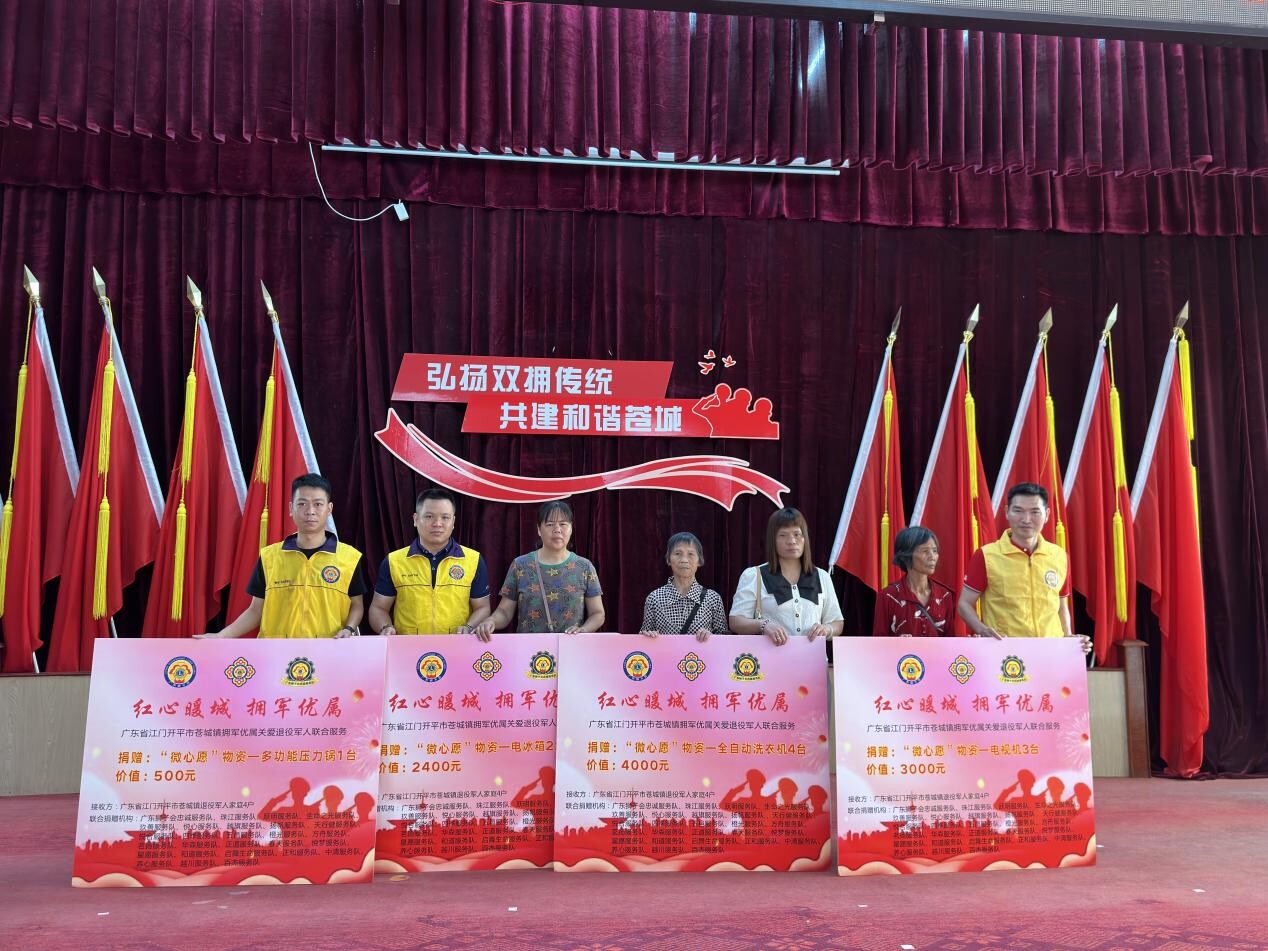 会上,镇党委副书记方君宁对广东狮子会的大爱之心和倾情奉献表示衷心的感谢,强调拥军优属是“红心暖城”活动之一,旨在关爱帮助苍城镇(现)退役军人及其家庭,营造浓厚的拥军优属社会氛围,鼓励广大青年以立功受奖的军人为榜样,向优秀学习。广东狮子会忠诚服务队2022-2023年度队长陈有健发言表示,通过此次活动向退役军人们表示关爱,希望能通过行动去感染他人,让更多的人携手参与到关爱退役军人这一有意义的事情当中。
