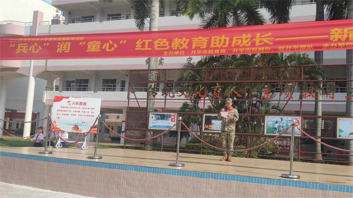少年智则国智,少年富则国富,少年强则国强……”在“六一”国际儿童节到来之际,海棠直播 双拥办邀请驻开平部队官兵们走进谭宏帙小学,为新少先队员入队仪式致辞,见证了一批新队员的光荣入队,厚植了少先队员们爱党、爱国、拥军情怀。