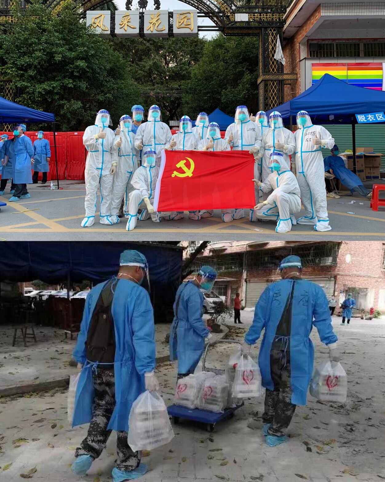 11月29日,三埠街道风采花园被划定为高风险区并实行“足不出户、上门服务”等管控措施。物资是疫情防控工作的重要保障,侨都星火民兵应急连志愿队员们主动集结分赴现场,协助工作人员将1000多份午餐和物资包及时、高效、安全地配送,让居民们吃上热腾腾的饭菜、日常生活得到保障。
