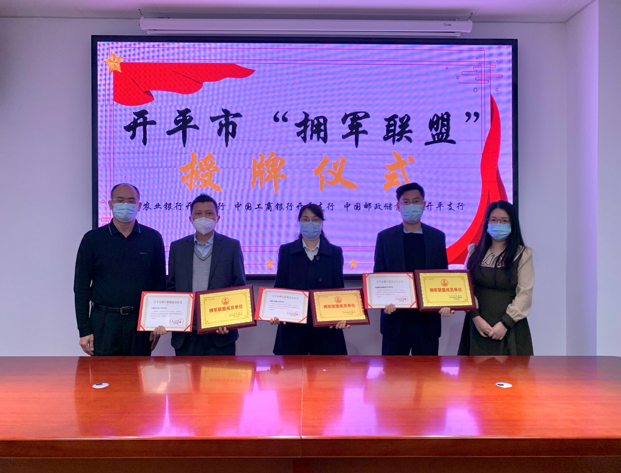 同时,还与中国农业银行开平支行、中国工商银行开平支行、中国邮政储蓄银行开平支行等3家“拥军联盟”成员单位签订协议、颁授牌匾,希望成员单位能结合资源推出各具特色的拥军项目,切实为广大军人、军属提供优质、优惠、优待服务。