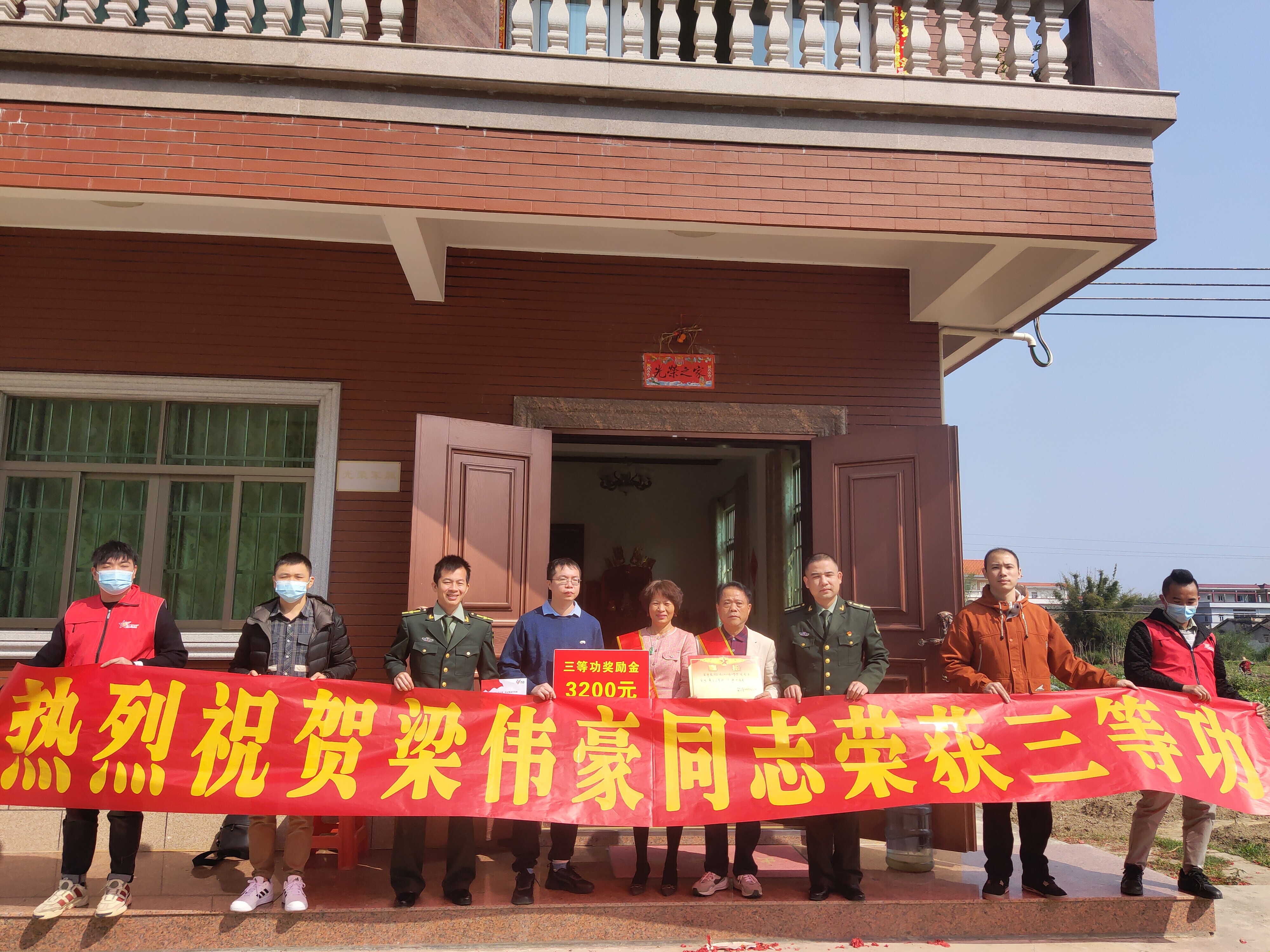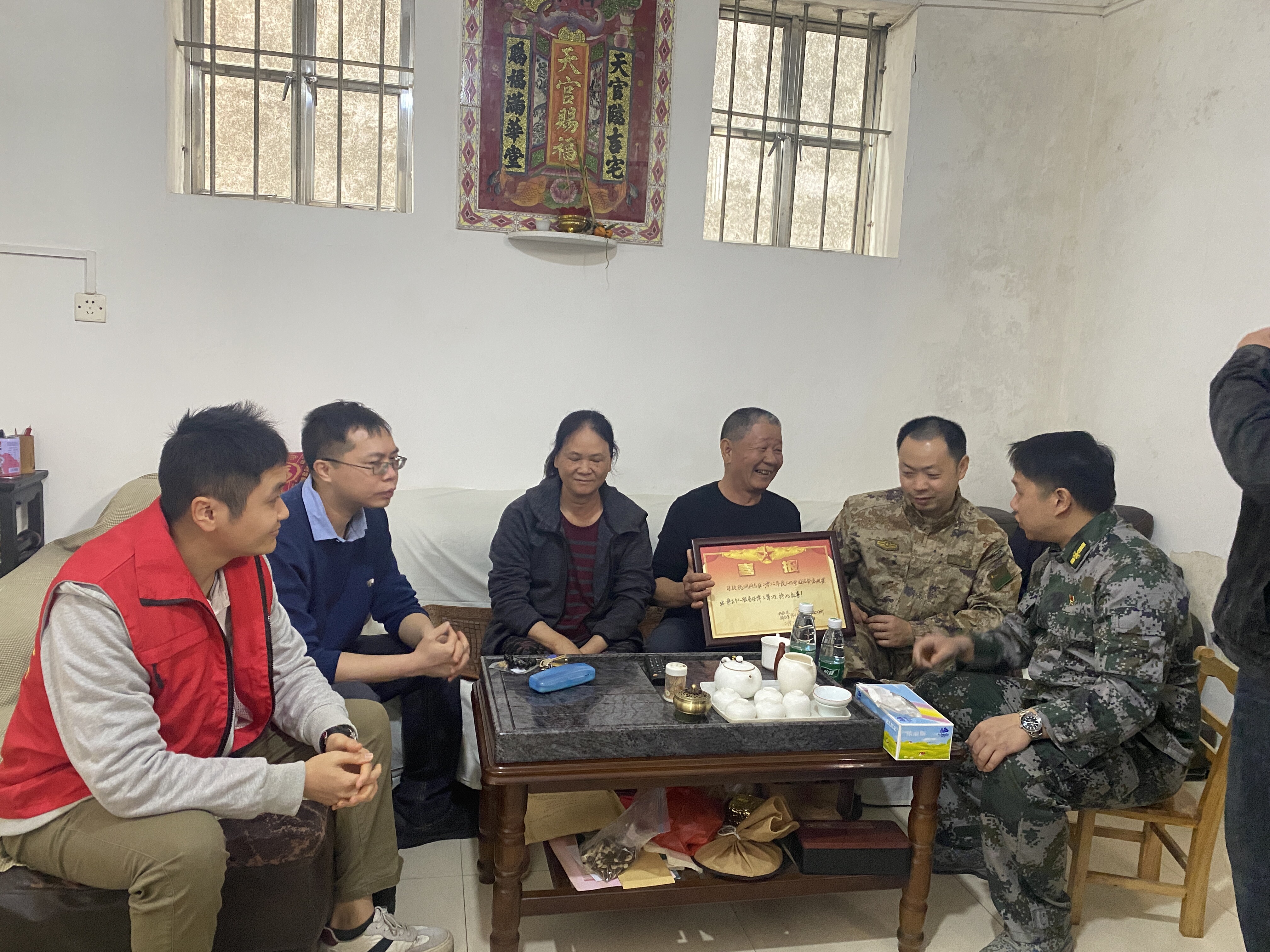 慰问组一行对现役军人司徒德润、梁伟豪同志荣立三等功表示祝贺,与其家人亲切交谈,详细询问了军属家庭生活情况,并赞扬他们为部队培养了新时代优秀军人,为国防事业输送了优秀人才,为家乡争得了荣誉,希望他们在部队再立新功、再创佳绩。