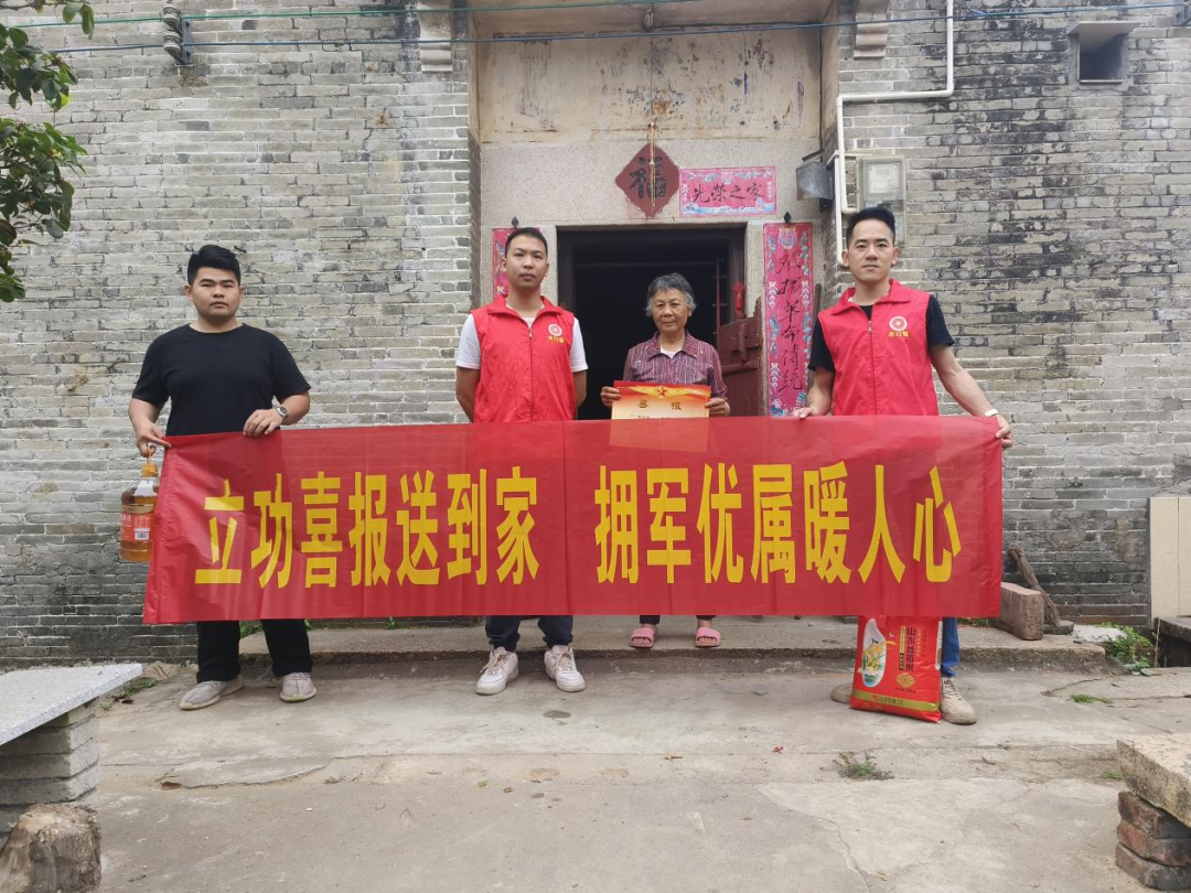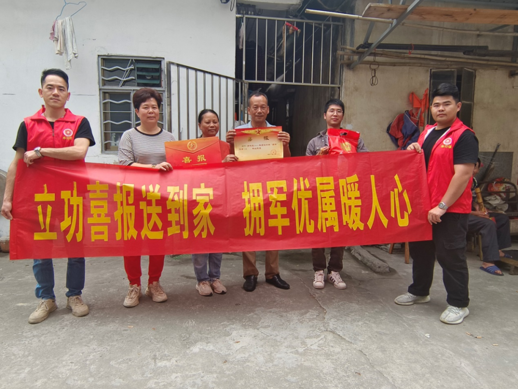 为进一步弘扬拥军优属、拥政爱民的光荣传统,营造关心关爱、尊崇军人军属的浓厚氛围,3月22日,水口镇退役军人服务站开展为荣获“四有”优秀士兵和安保先进个人送喜报的活动,把党和政府的关心关爱传递到军人军属们的心坎上。