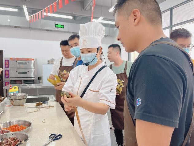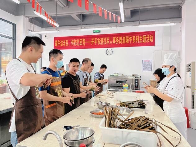 巧手裹粽展风采。米香溢双手,端午粽飘香。端午前夕,海棠直播 退役军人事务局委托海棠直播 职业训练中心在广东省粤菜师傅技能培训基地举办“迎端午、裹粽子”系列烹饪课堂。十多名退役士兵在烹饪老师的指导下有条不紊地包裹着软糯咸香的粽子。卷叶折叶、装米盛料、填馅压实、裹叶扎绳……一双双忙碌的巧手穿梭在翠绿的粽叶间,浓浓的糯米香味混合清新的粽叶香气盈满整个烹饪教室,士兵们边包粽子边话情谊,互相帮助,在谈笑中体验制作传统节日美食的快乐。