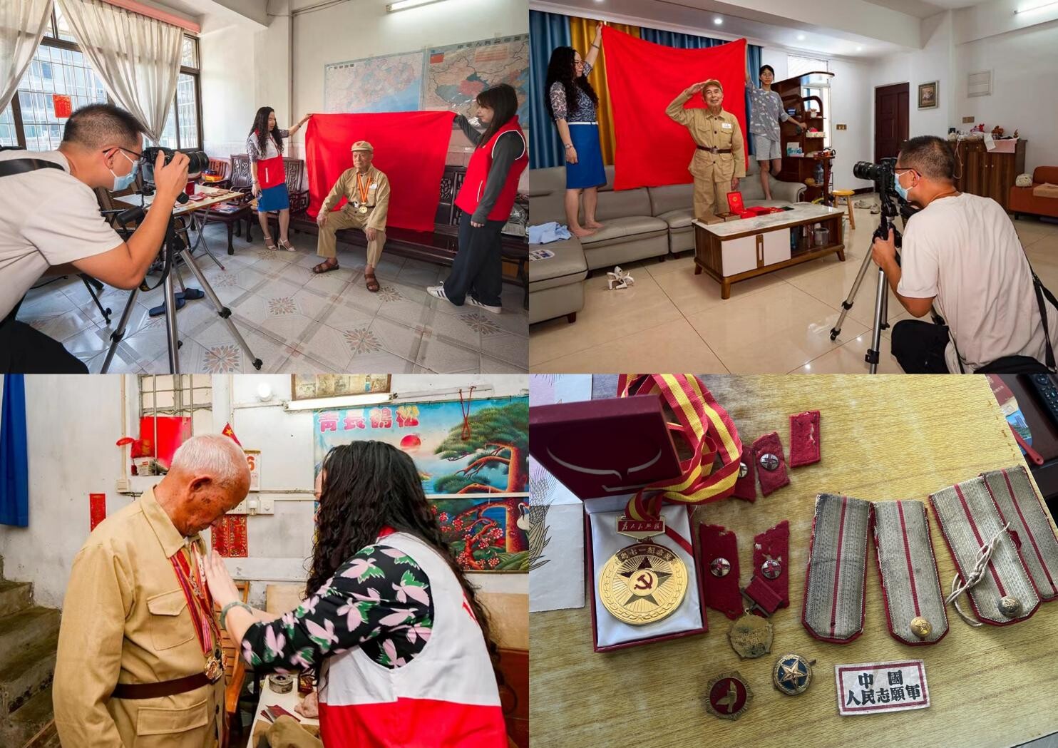 组织摄影师、志愿者逐一上门为19名抗美援朝老战士拍摄个人肖像照,并制作成纪念相册。这些老兵年龄最大的98岁、最小的87岁,他们精神矍铄、神采奕奕,散发着军人特有的精气神。在换上志愿军服饰、佩戴好纪念章后,他们仿佛又忆起了当年革命风采,仿佛又看到了那些并肩作战的战友们可爱的面容。