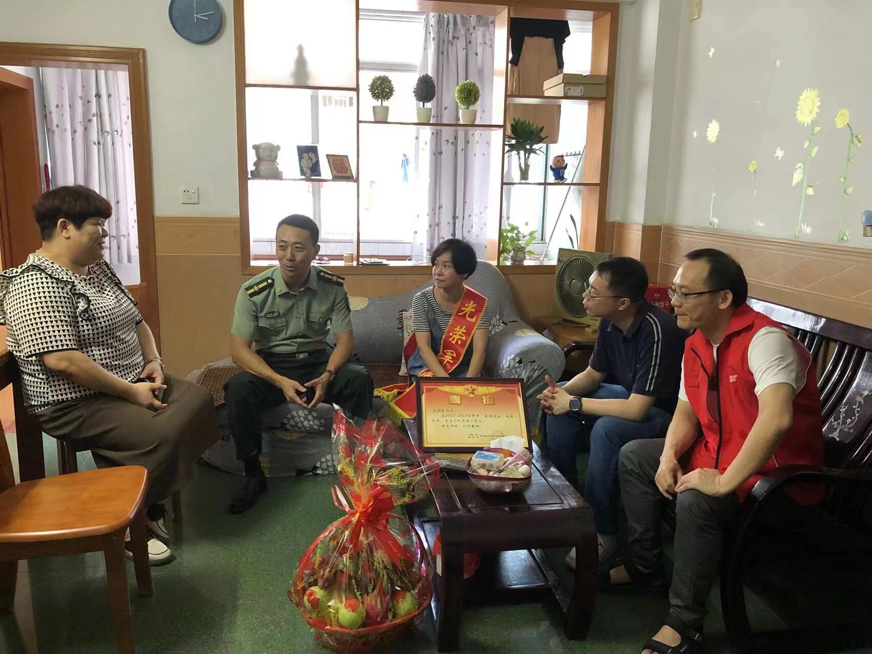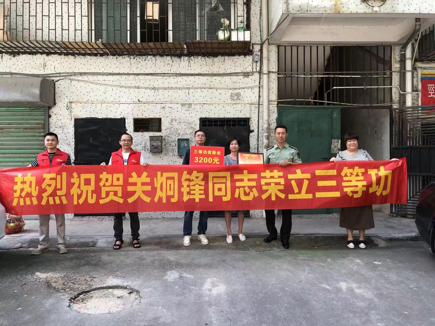 为进一步弘扬拥军优属的光荣传统,营造“一人参军,全家光荣”的氛围,“八一”建军节前夕,市退役军人事务局联合三埠街道退役军人服务站到荣立三等功的三埠籍现役军人关炯锋家中给其家人送上喜报和慰问金。