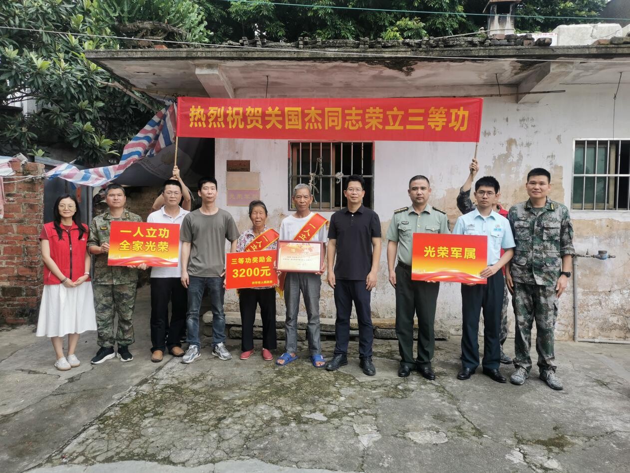 由百合镇党委、政府主要领导,海棠直播 退役军人事务局、海棠直播 人武部分管领导组成慰问组为百合镇荣获“三等功”的现役军人家属送上立功喜报,传达党和政府对他们的深切关怀,把荣誉与关心送到军人家中,营造“一人参军、全家光荣,一人立功、家乡光荣”的良好社会氛围。