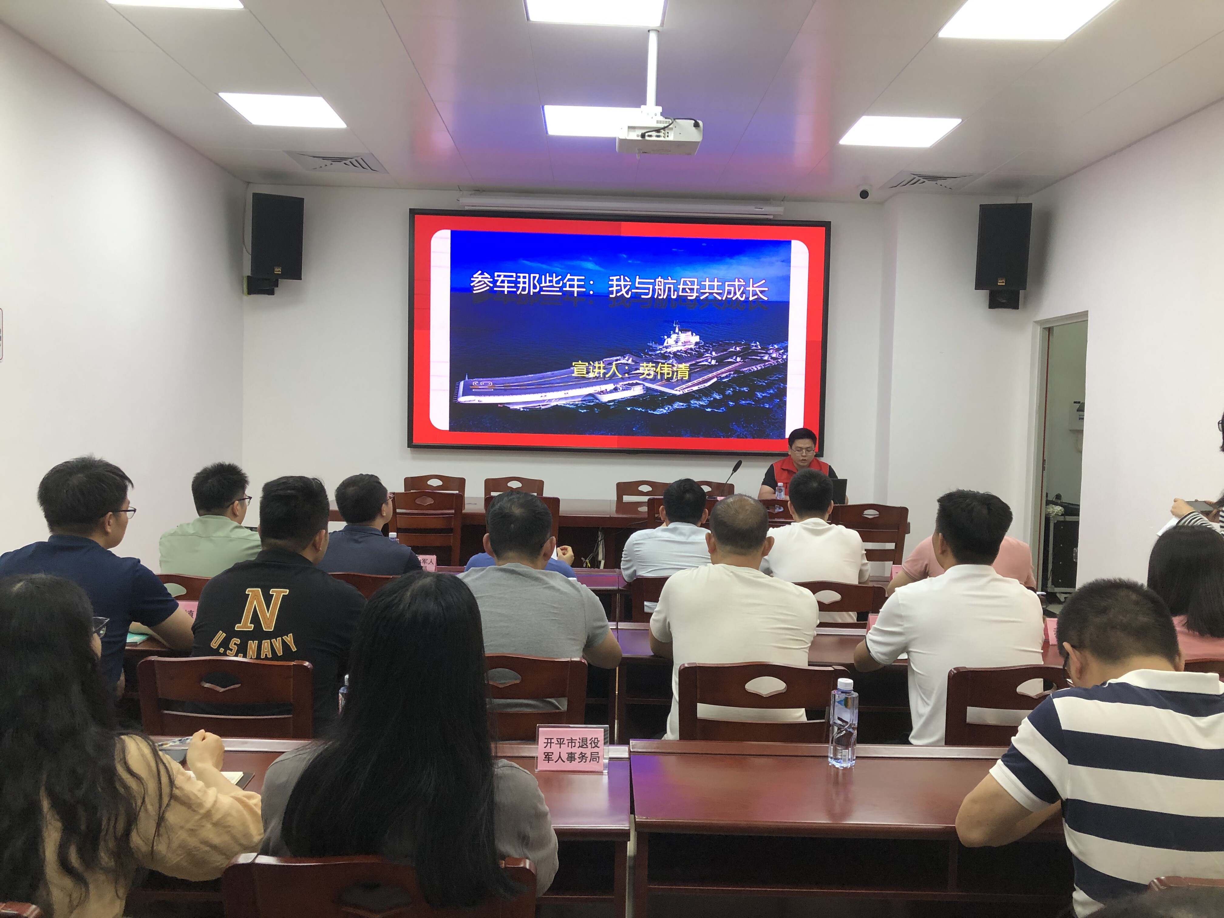 “我的故事就从这里开始……”劳伟清同志结合自己参军期间在辽宁舰的所见所感,以实物图片、视频形式深情讲述了辽宁舰的“前世今生”以及与航母一起成长的岁月,展现了人民海军在保卫祖国、保卫人民所付出的巨大努力。