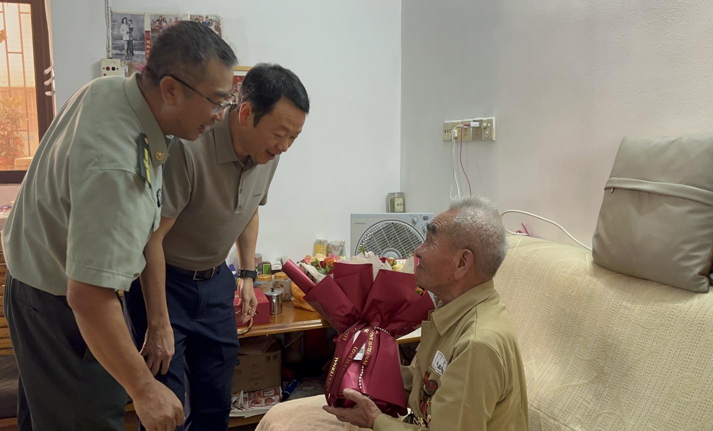 庆生现场被装点得格外温馨:粉白相间的康乃馨摆在茶几中央,三层蛋糕上“百岁寿星 英雄永存”的字样格外醒目,墙角的音响里正循环播放着《中国人民志愿军战歌》。“谭伯当年不仅打仗勇敢,之前在爱民村当二十多年的村小组组长时,修水渠、管生产,桩桩件件都为村民着想。”陪同前来的爱民村委会代表凑近老人耳边说。老人闻言摆摆手,笑出了声:“都是该做的,当兵保家,回乡护民,一样的。”