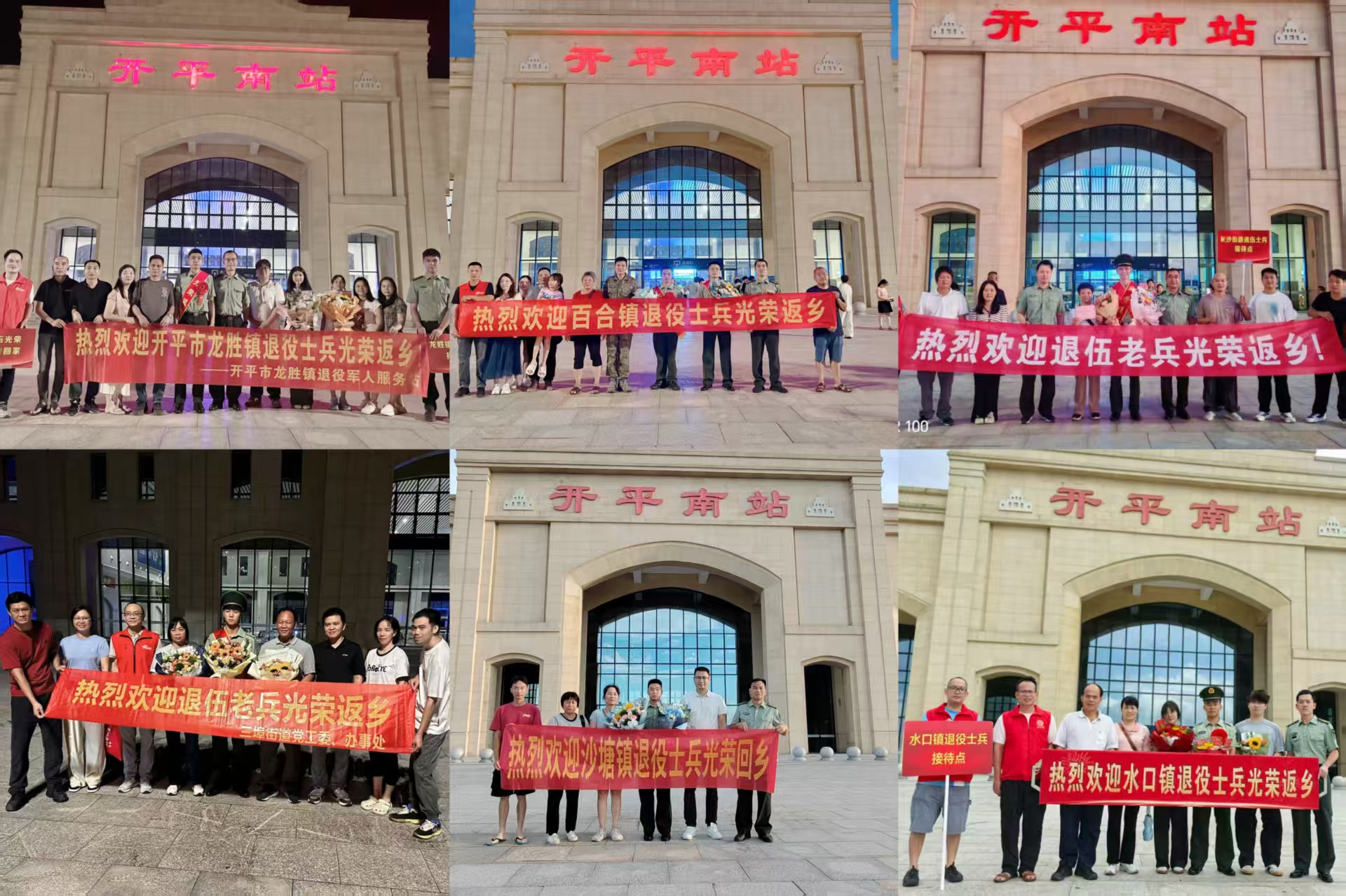 近日,开平南站外彩旗飘扬,“欢迎退役士兵光荣返乡”的红色横幅格外醒目。市退役军人事务局工作人员联合镇街工作人员及部分退役士兵家属早早等候在此,以最诚挚的仪式,迎接首批圆满完成军旅生涯、载誉归来的退役士兵,确保退役士兵顺利完成角色转变,感受家乡关怀。