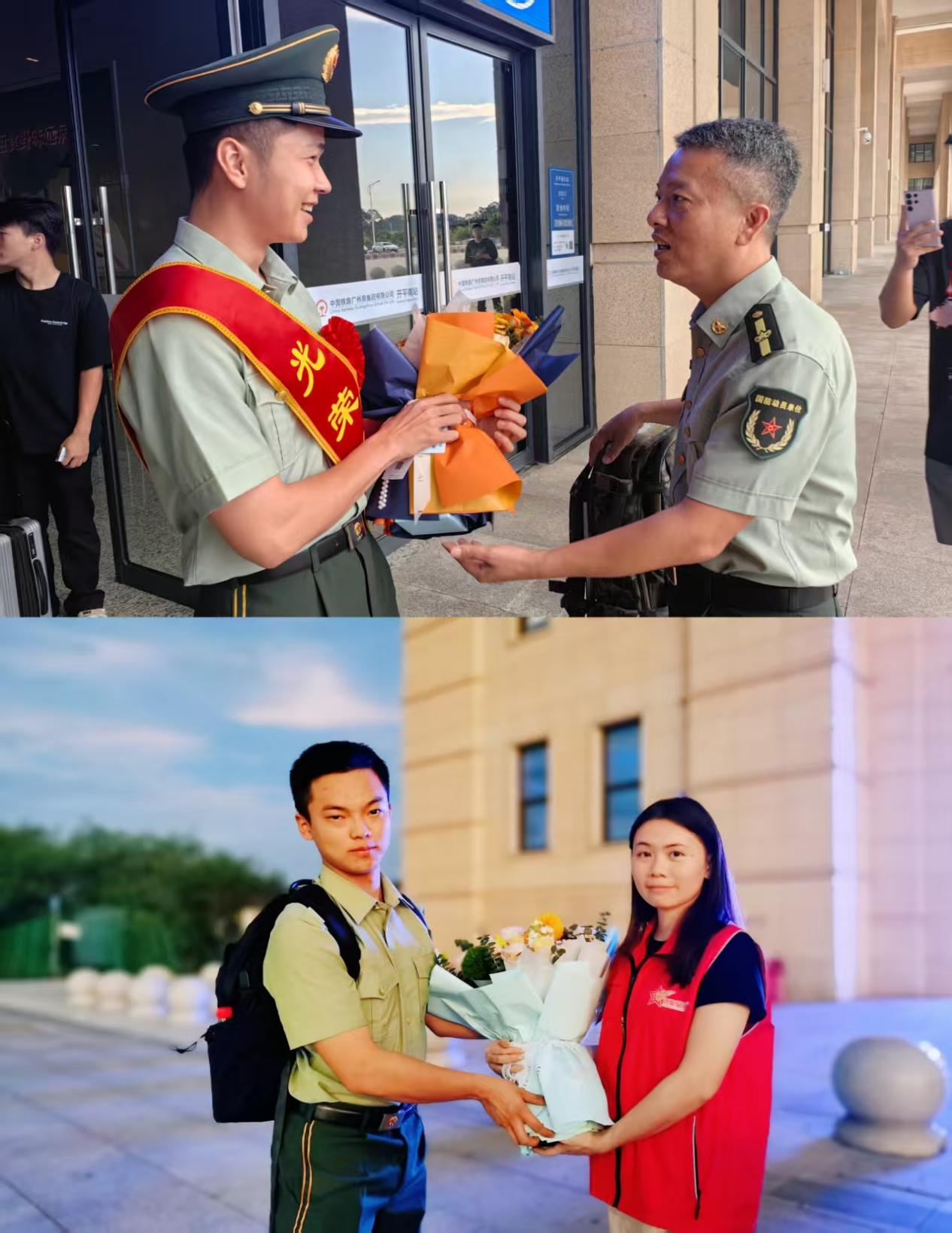 9月1日15时许,载有退役士兵的列车缓缓驶入站点。身着军装、身姿挺拔的退役士兵们有序下车,脸上带着对家乡的思念与军旅生涯的自豪。迎接人员立刻上前,为他们佩戴“光荣退役”绶带,递上鲜花、政策手册的“暖心礼包”,并送上热烈的掌声以及崇高的敬意:“感谢你们为国防事业奉献青春,欢迎回家!