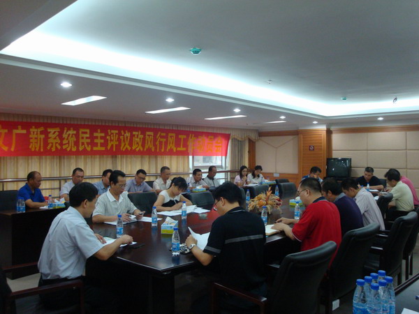 文广新局民主评议政风行风工作方案》,向与会同志明确了开展民主评议政风行风工作的指导思想、评议对象、评议内容、评议重点和实施步骤。 局长谭伟强在会上强调指出,开展民主评议政风行风工作,有利于促进全局各项工作,各股室和属下单位要结合自身的职能和特点,开展好此项工作。对于如何做好民主评议政风行风工作,谭伟强局长指出了三点要求:一是提高认识,统一思想,明确民主评议政风行风的目的;二是突出重点,精心组织,全面开展民主评议政风行风工作;三是加强领导,狠抓落实,确保民主评议政风行风工作按时按步骤圆满完成。 动员会现场